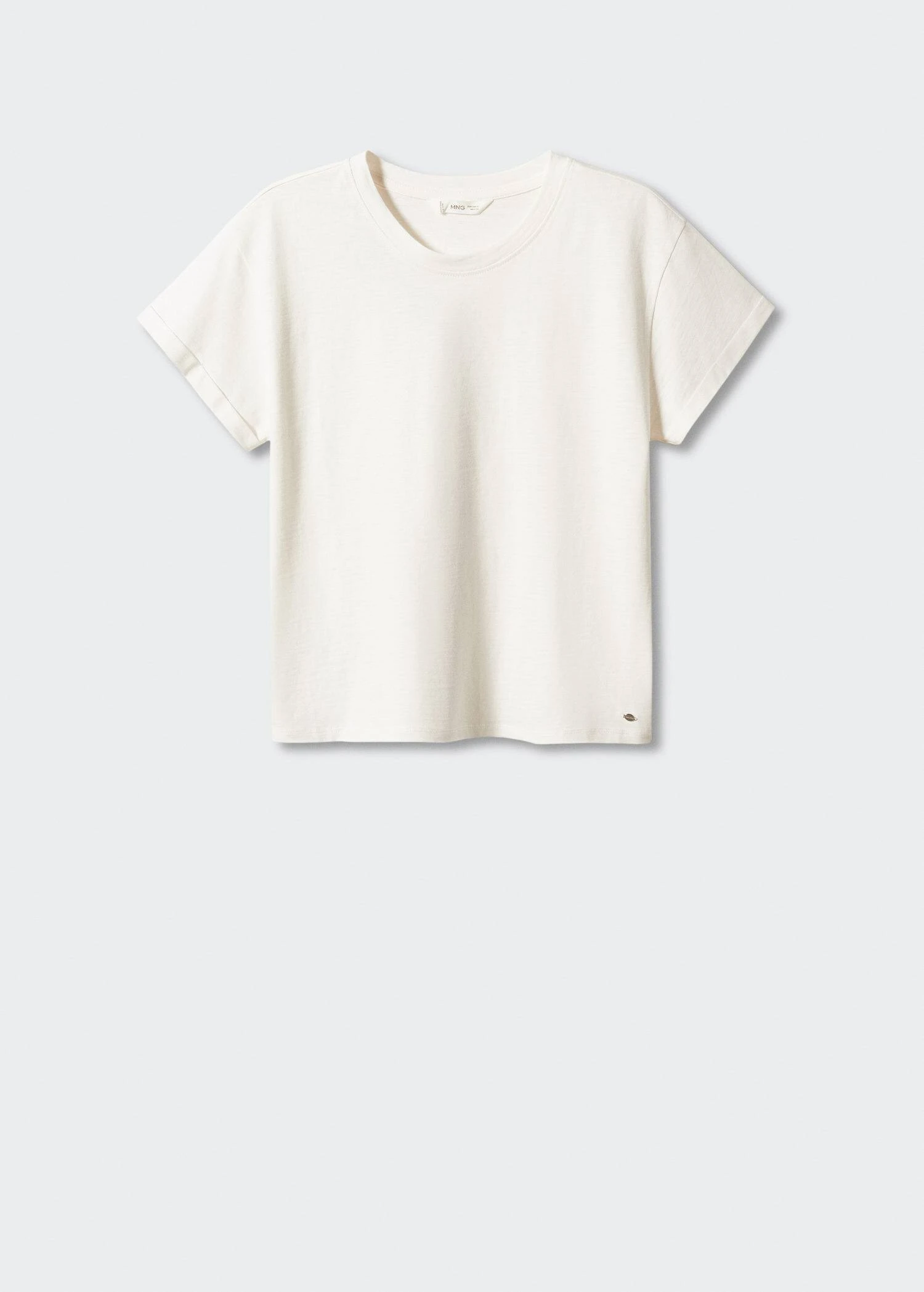 100 % coton, basique, coupe droite, col rond, manches courtes, le mannequin mesure 172 cm et porte une taille mComposition: 100% coton