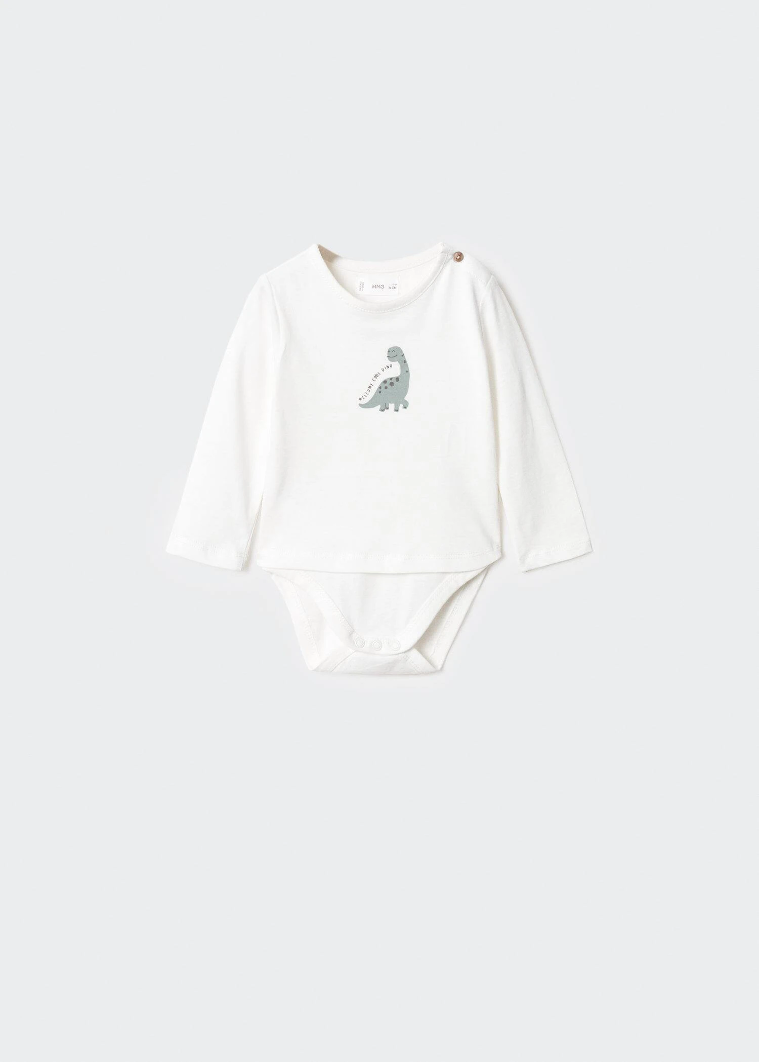 100 % coton, coupe droite, imprime de dinosaure, col rond, manches longues, fermeture boutonnee sur l’epaule.Composition: 100% coton