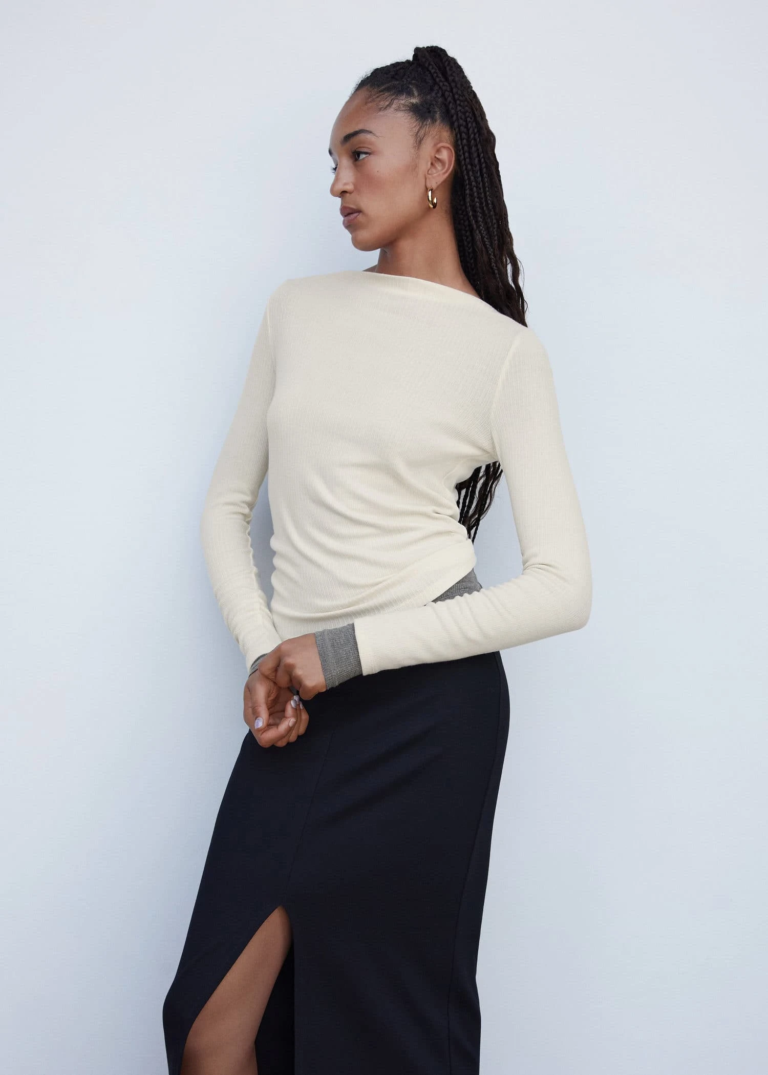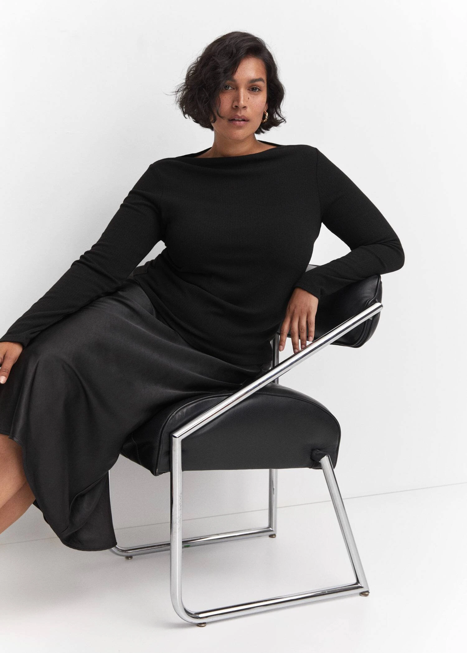 tissu cotele, coupe cintree, coupe longue, col bateau, manches longues, disponible plusComposition: 63% polyester recyclé,33% viscose,4% elasthanne