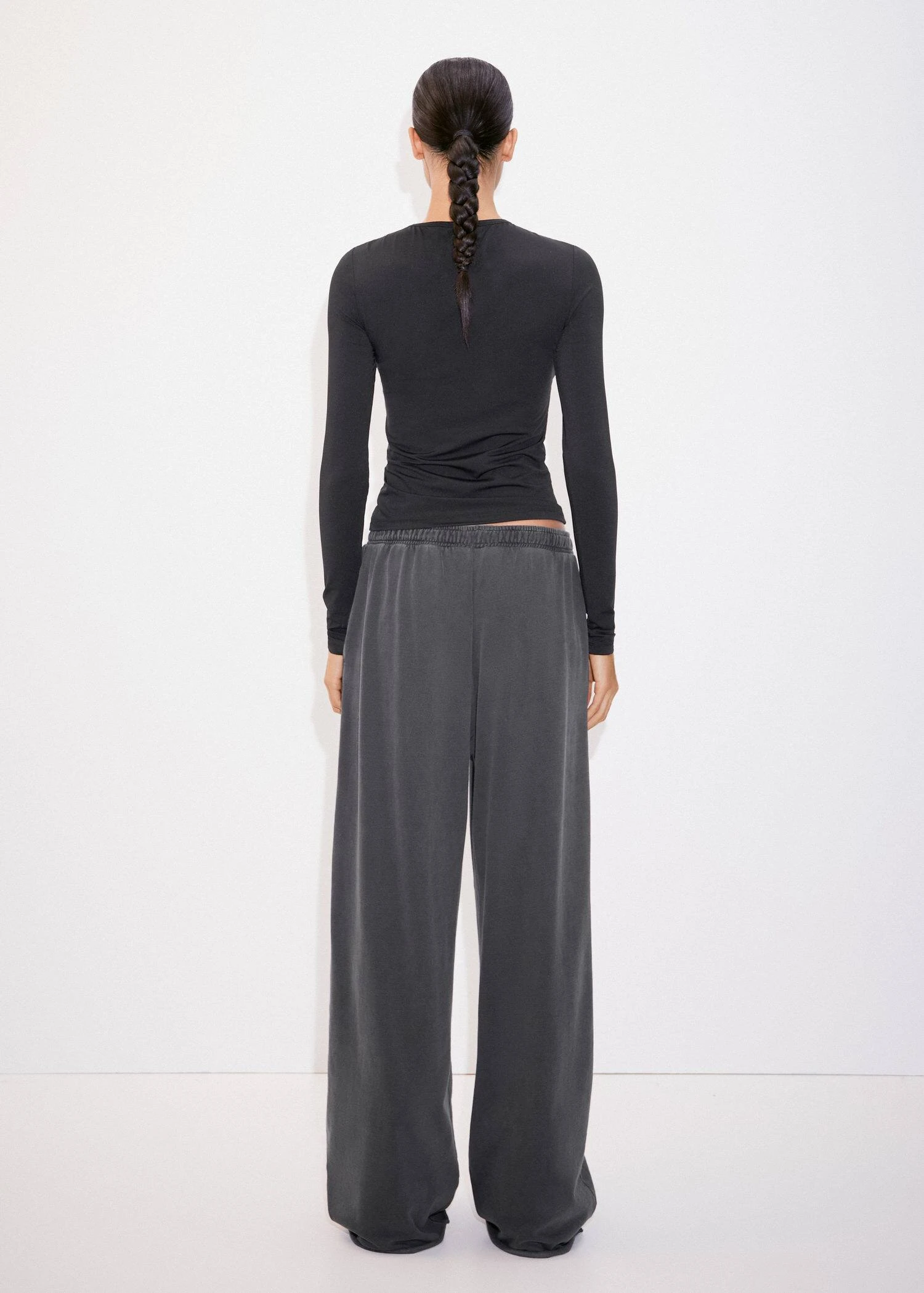 tissu fluide, droit, coupe longue, col rond, manches longuesComposition: 86% polyester,14% elasthanne