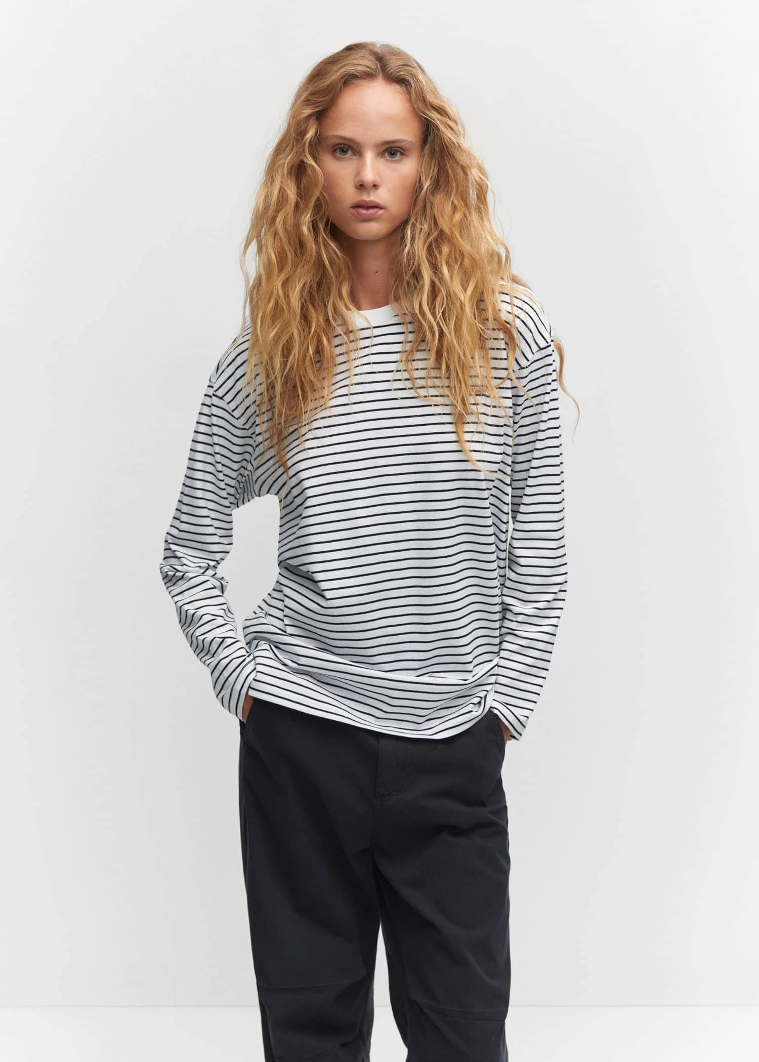 tissu 100 % coton, style oversize, coupe longue, motif raye, bicolore, col rond, manches longuesComposition: 100% coton. Cannelé: 100% coton