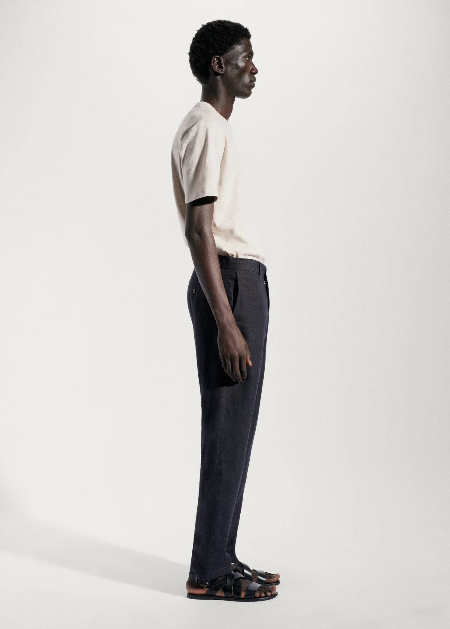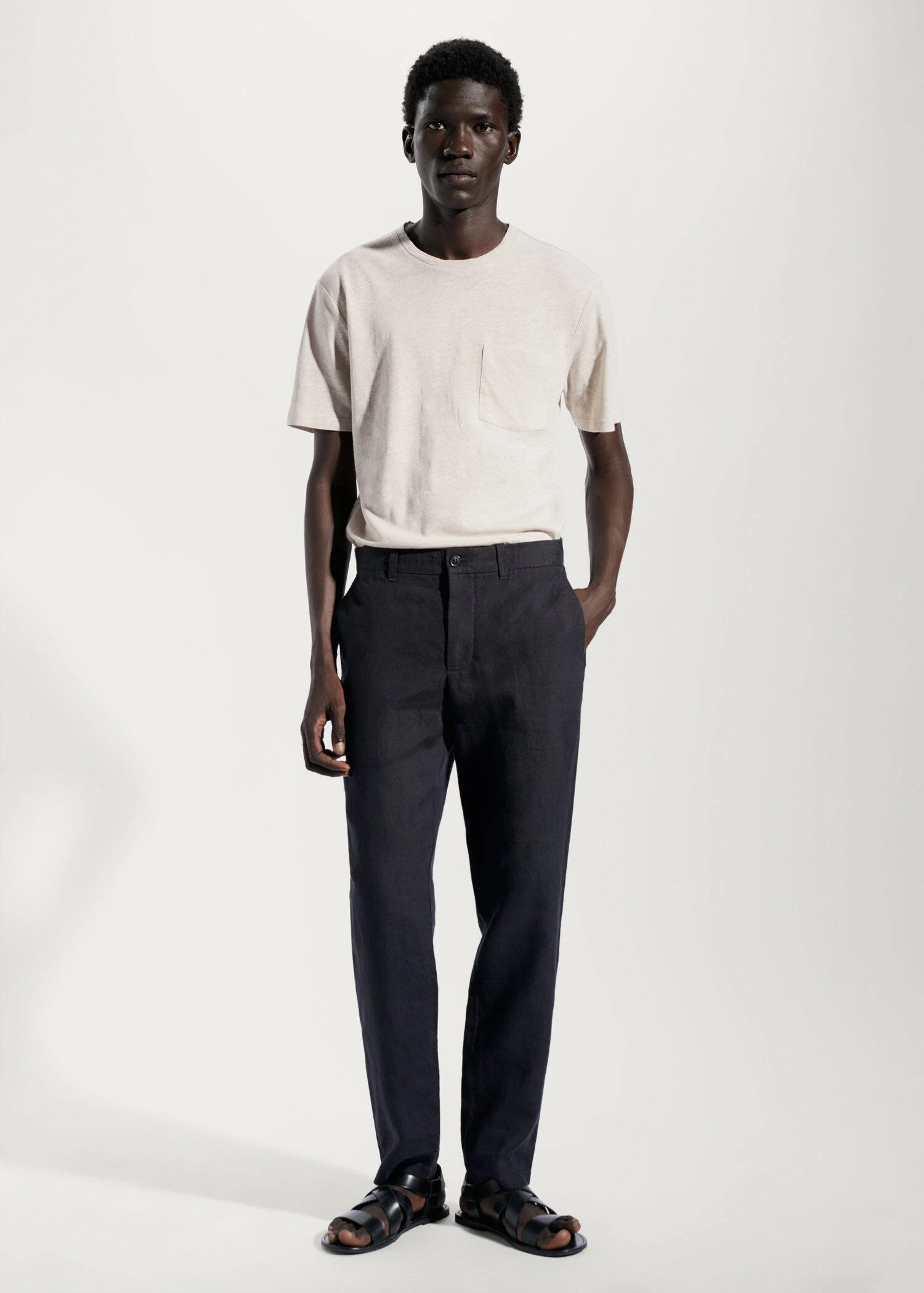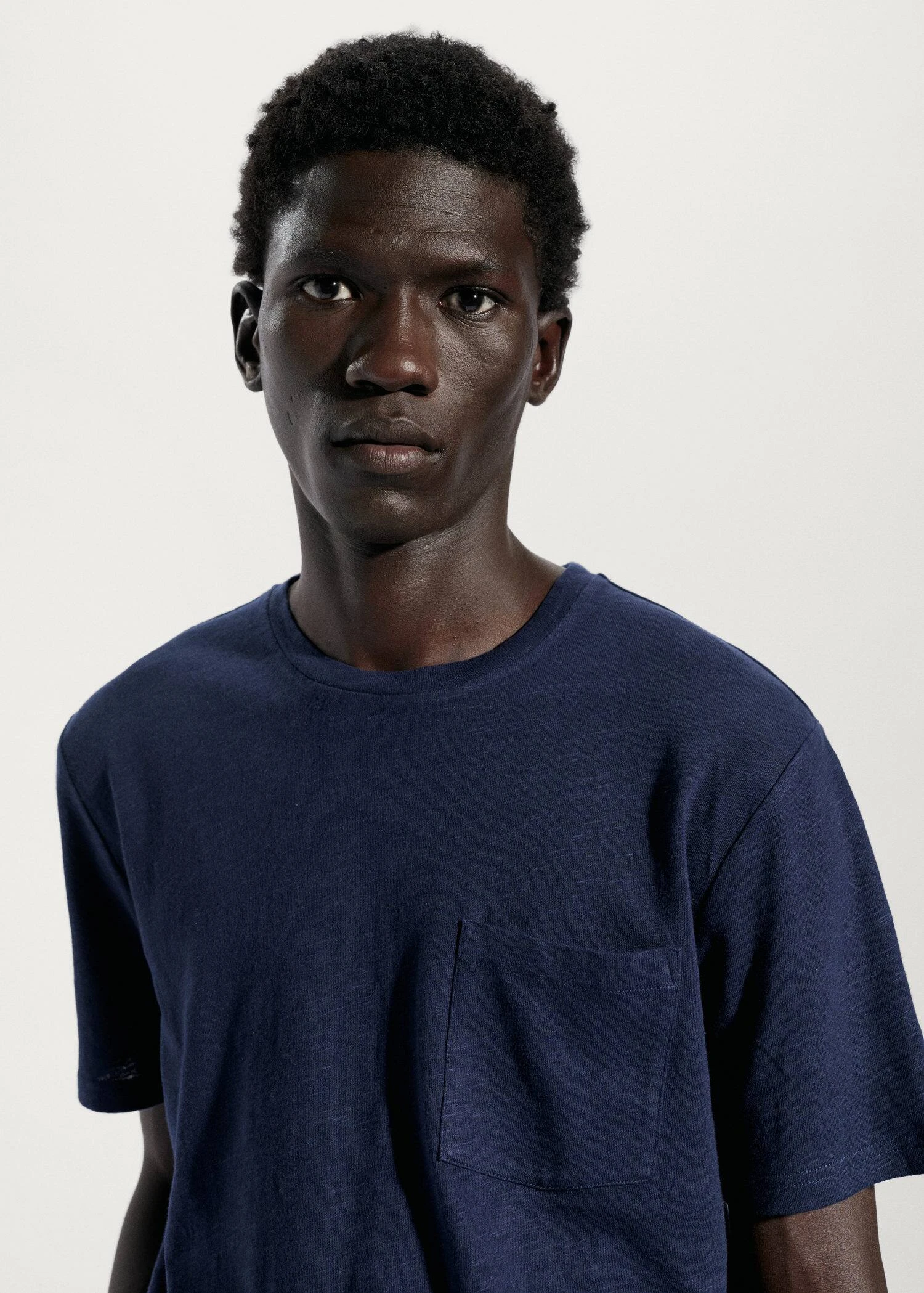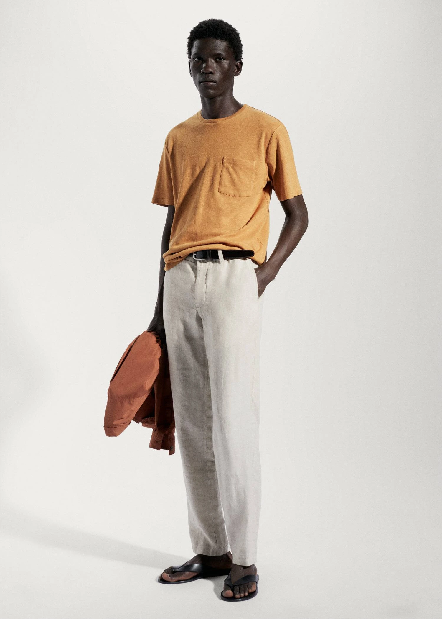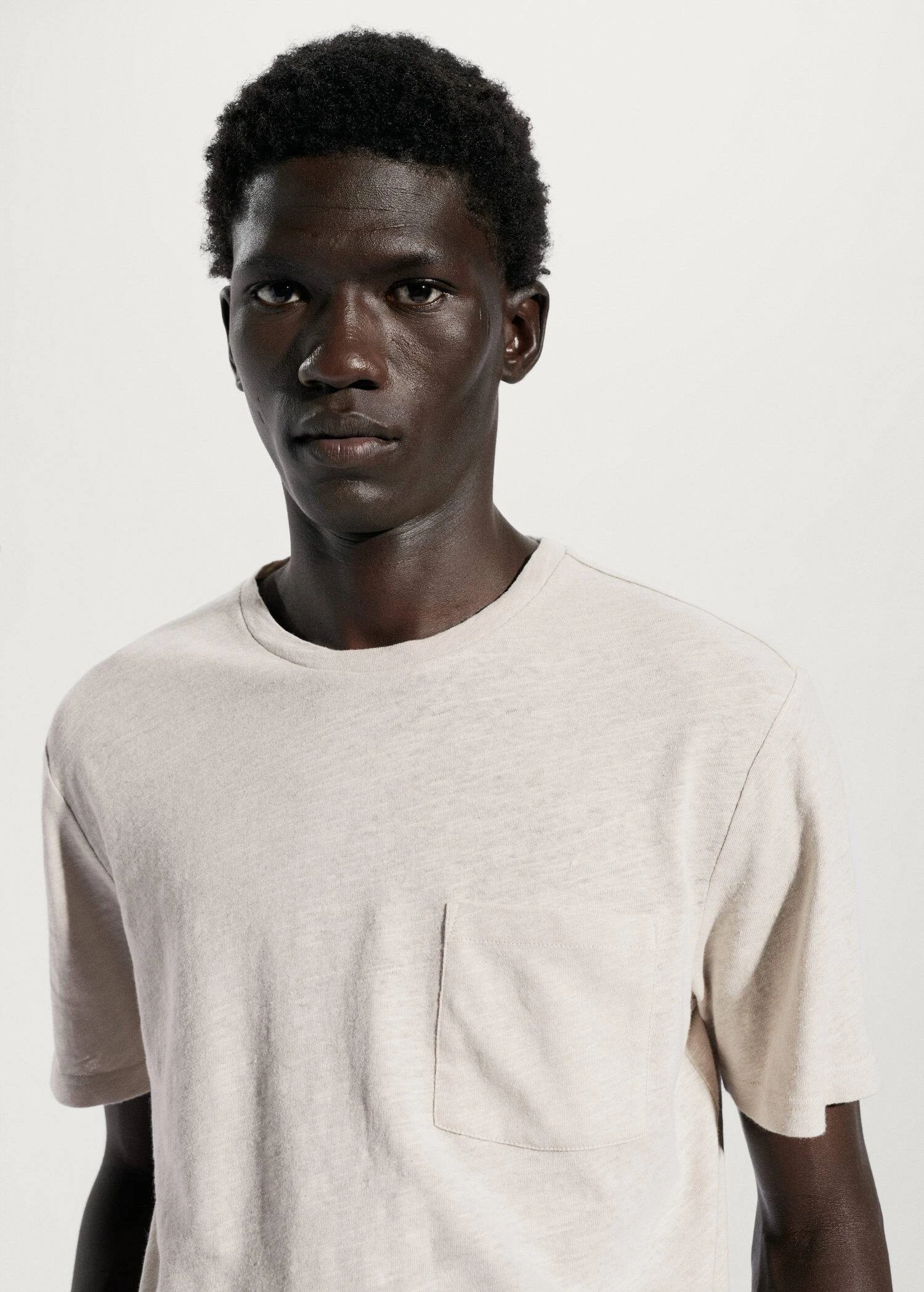 slim-fit, tissu en coton et lin melanges, tissu leger, col rond, manches courtes, bas droit fendu sur les cotes., le mannequin mesure 190 cm et porte une taille m, exclusivite internetComposition: 53% lin,47% coton