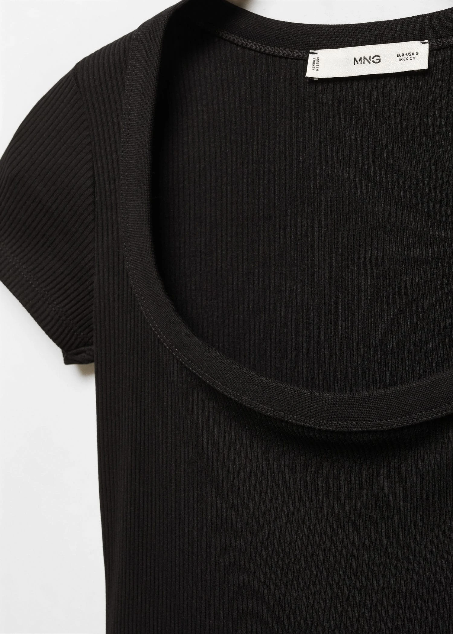 tissu en coton, ajuste, col echancre, manches courtesComposition: 92% coton,8% elasthanne