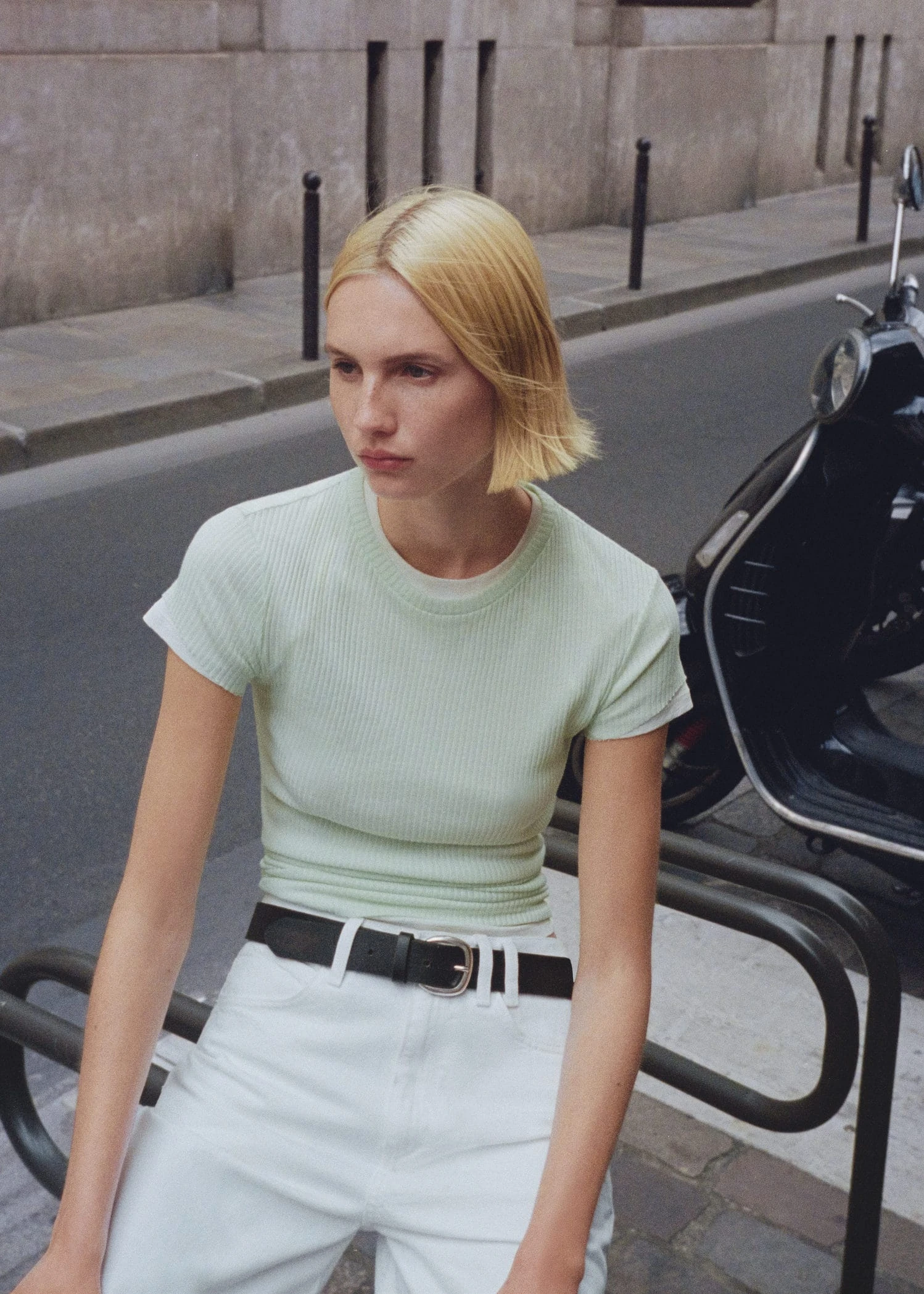 coupe droite, col rond, manches courtesComposition: 65% polyester,35% viscose