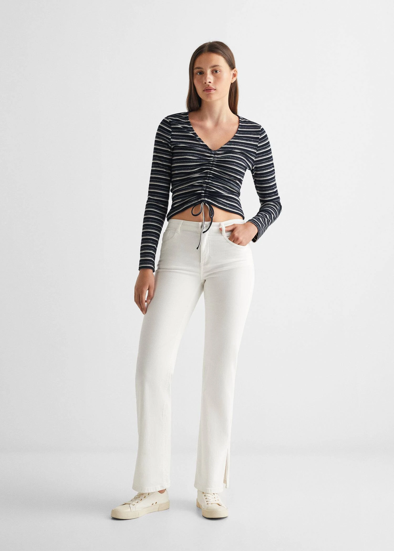 T-shirt Froncé Manches Longues