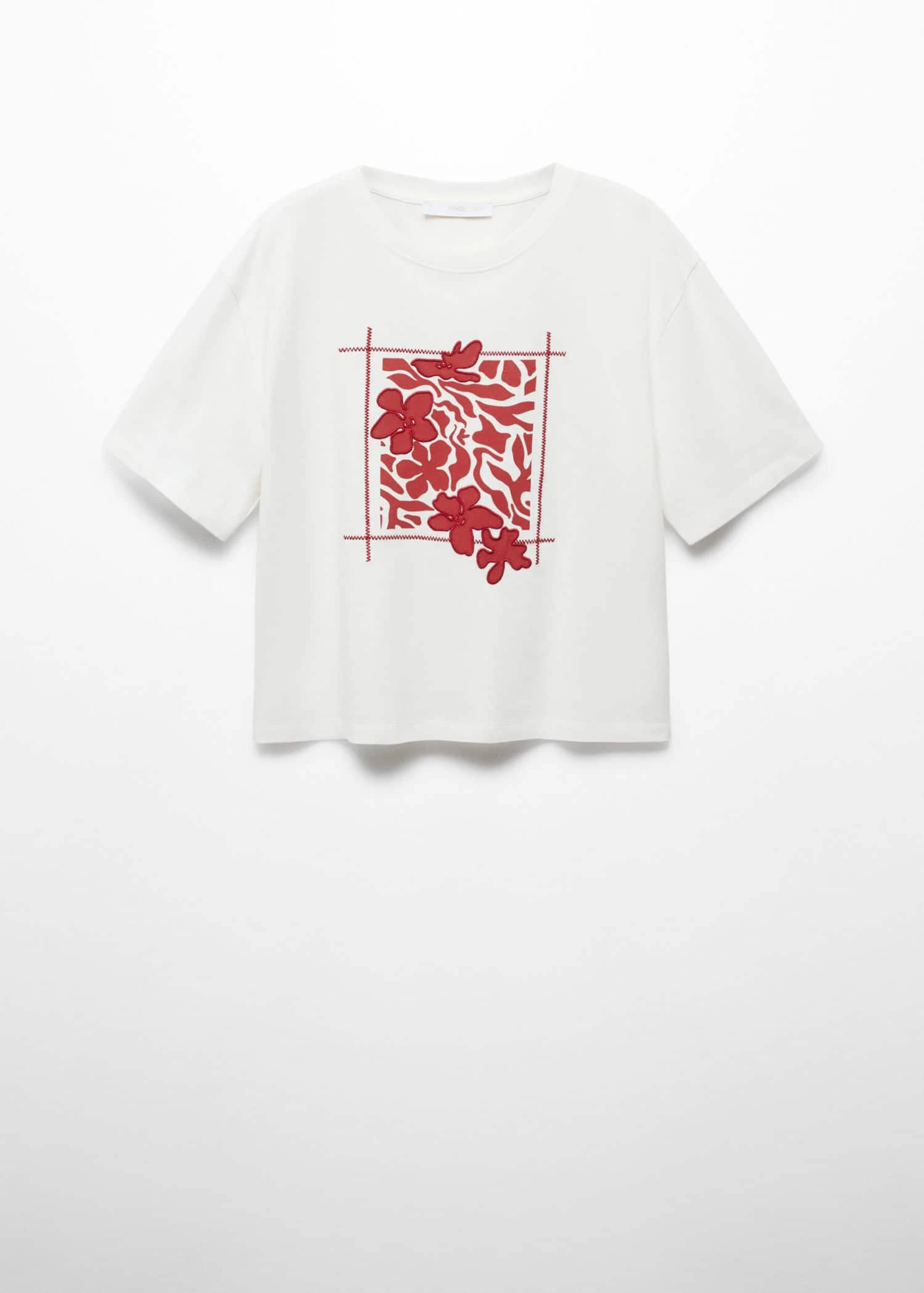 tissu 100 % coton, droit, imprime, col rond, manches courtes, details brodesComposition: 100% coton. Broderie: 100% polyester