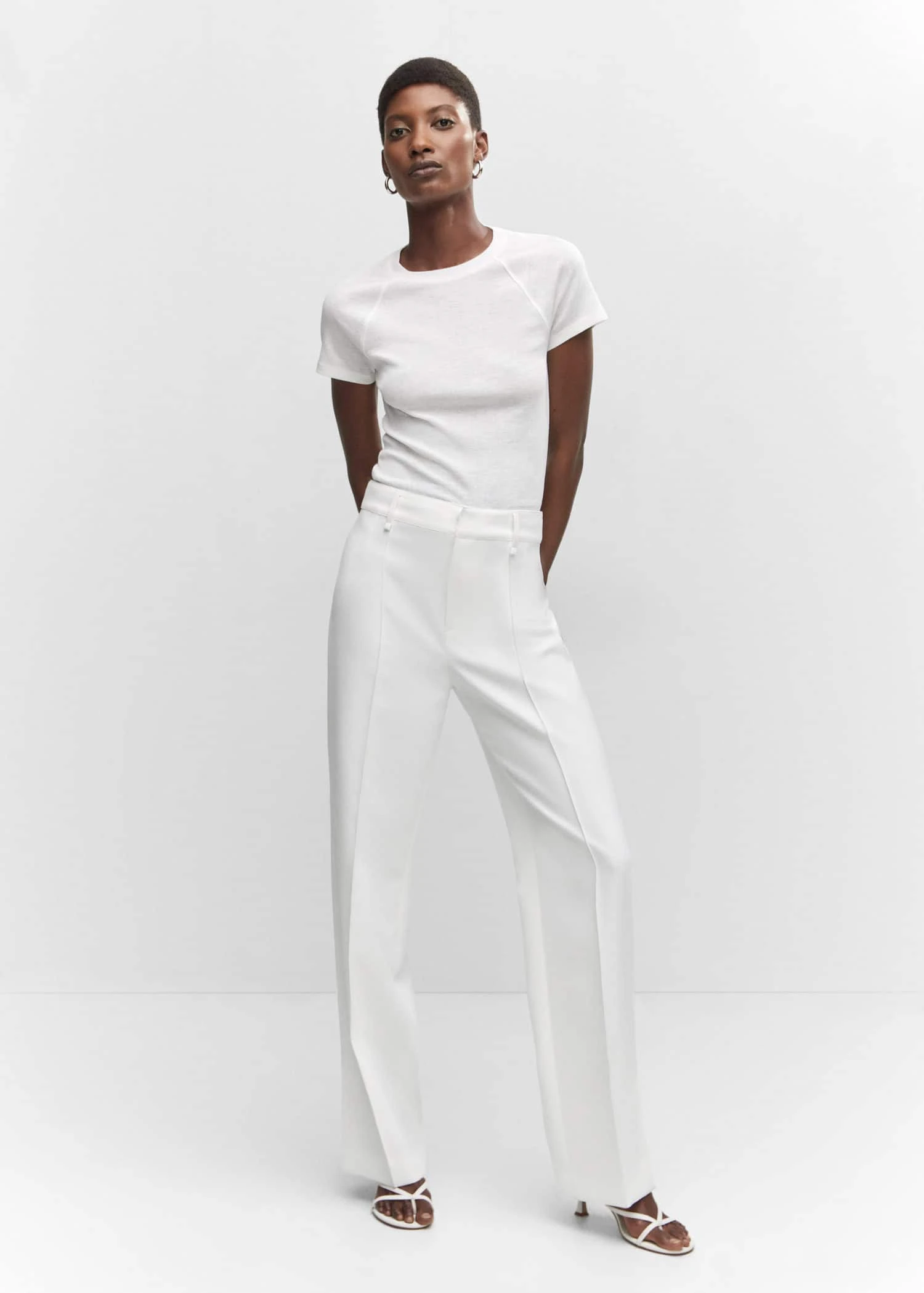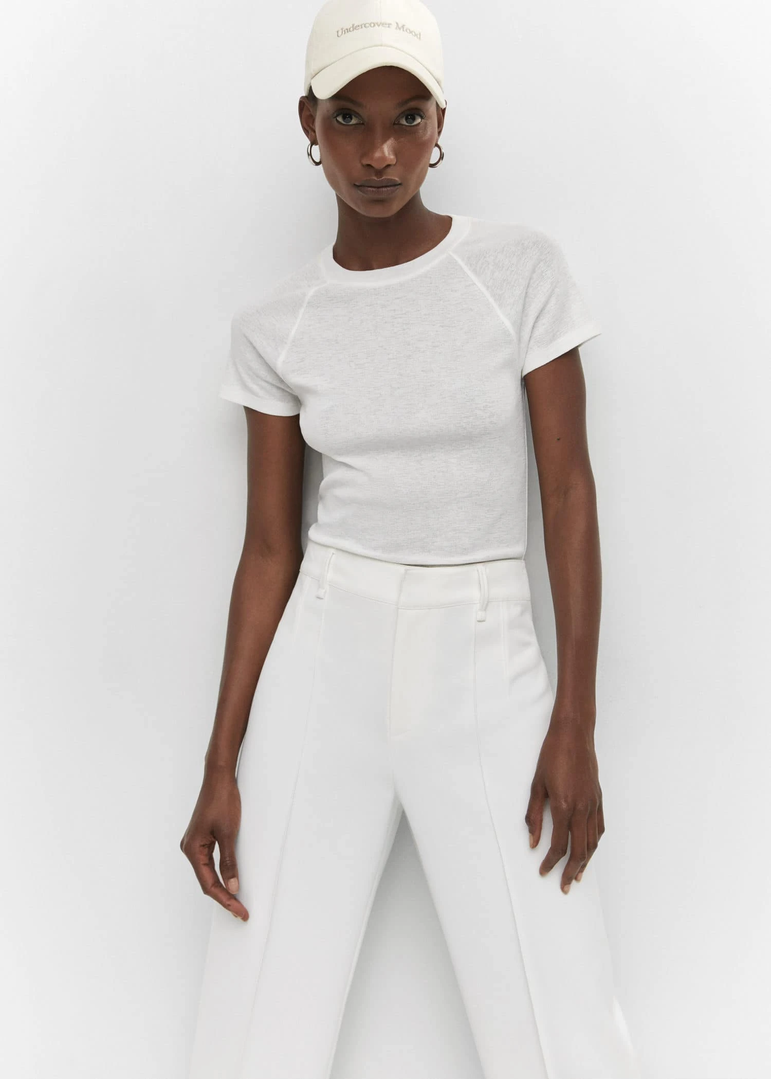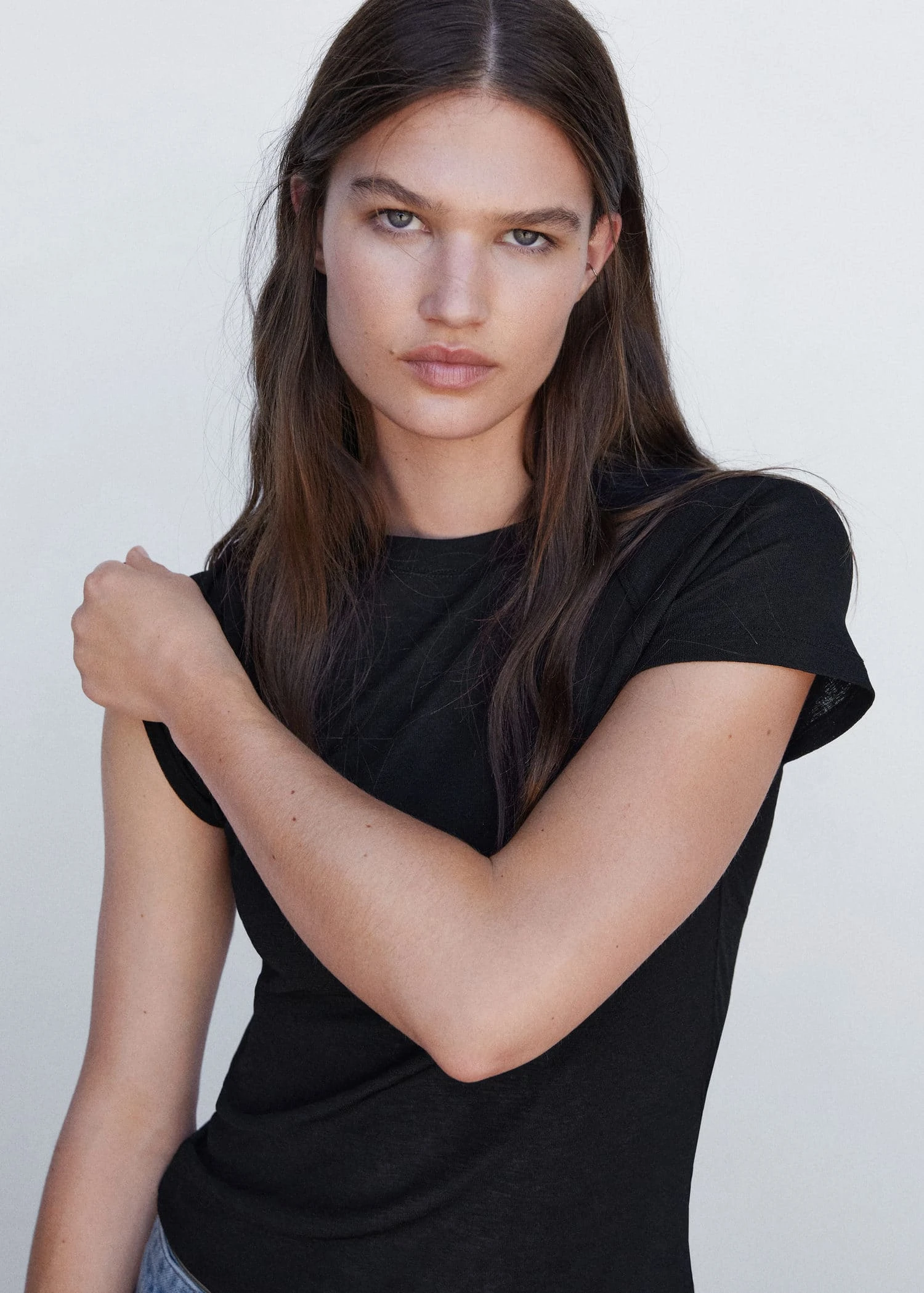 tissu fluide, coupe droite, col rond, manches courtes, coutures decorativesComposition: 60% polyester,40% polyester recyclé