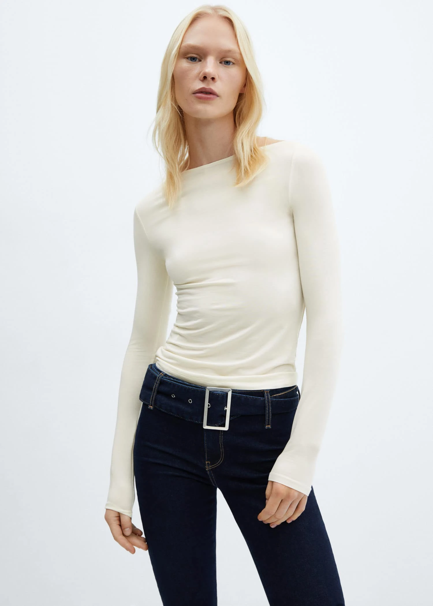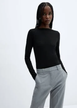 ajuste, col bateau, manches longuesComposition: 92% lyocell,8% elasthanne