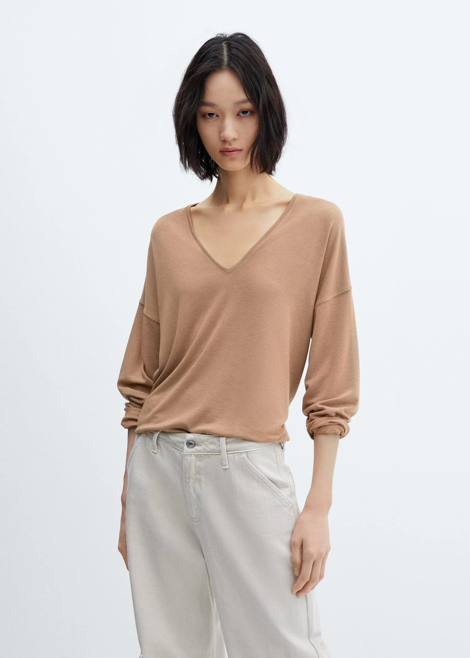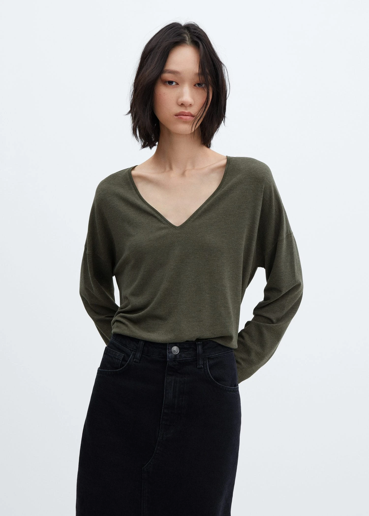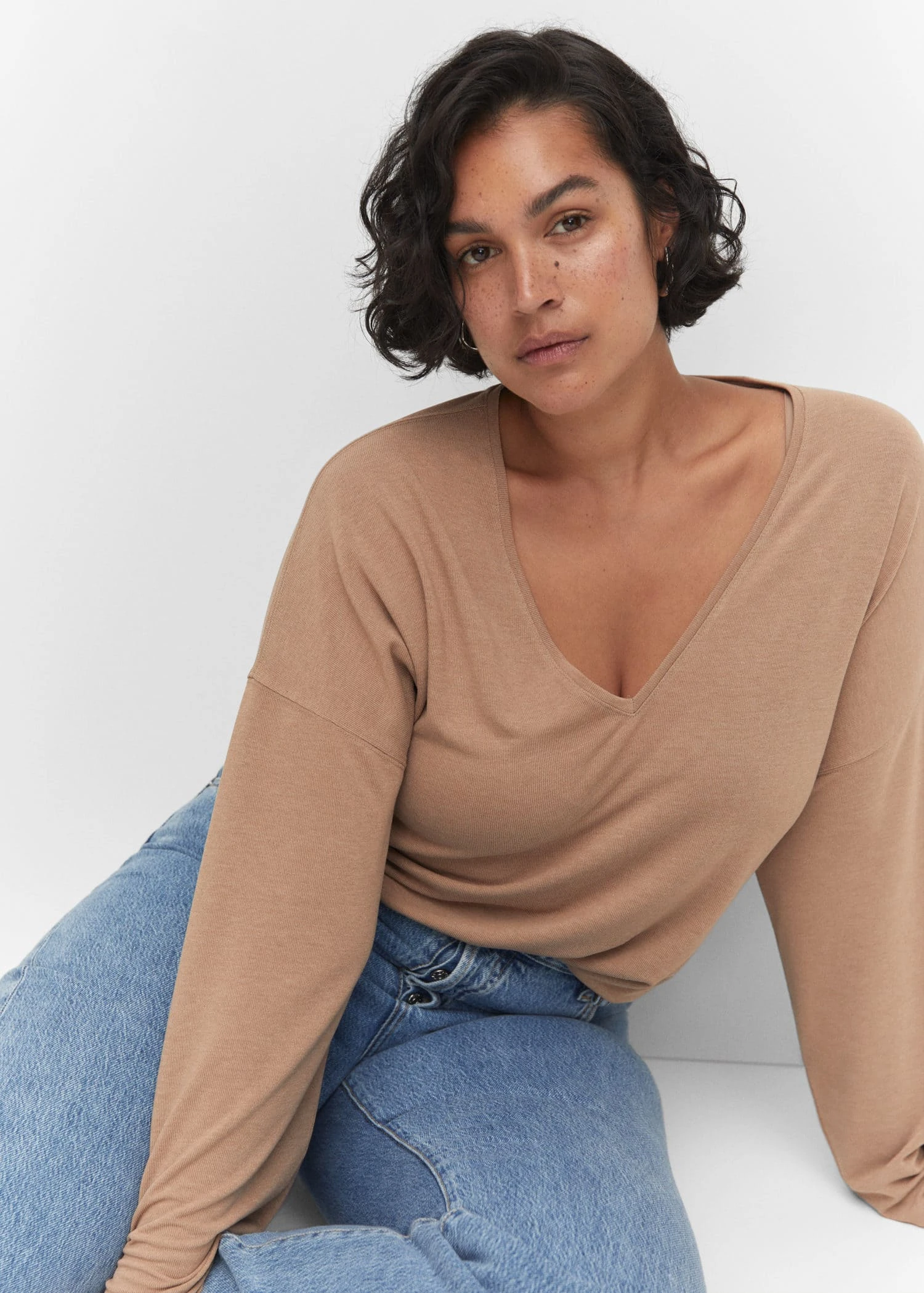 tissu fluide, coupe droite, col en v, manches longues, disponible plusComposition: 49% viscose,47% polyester,4% elasthanne