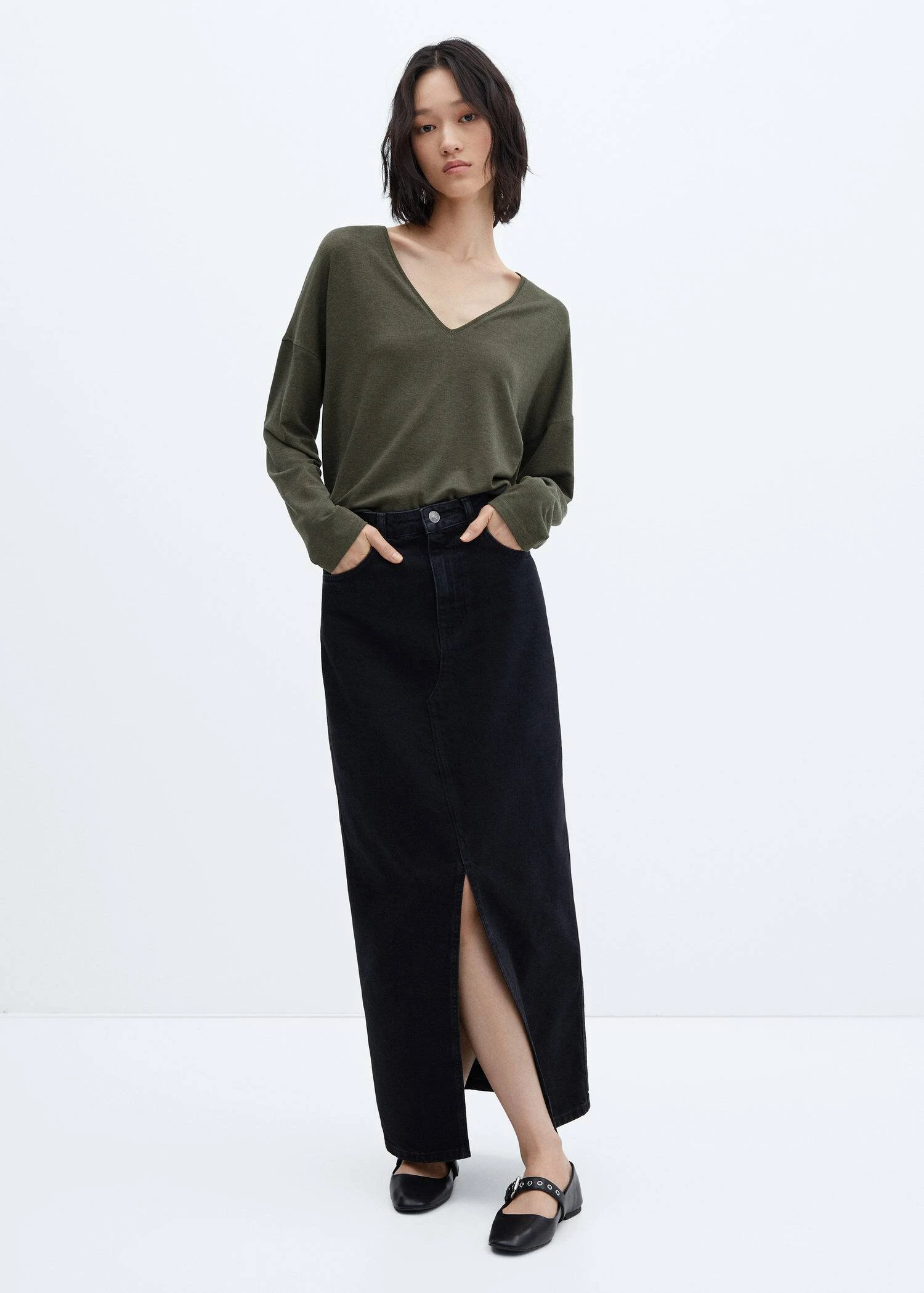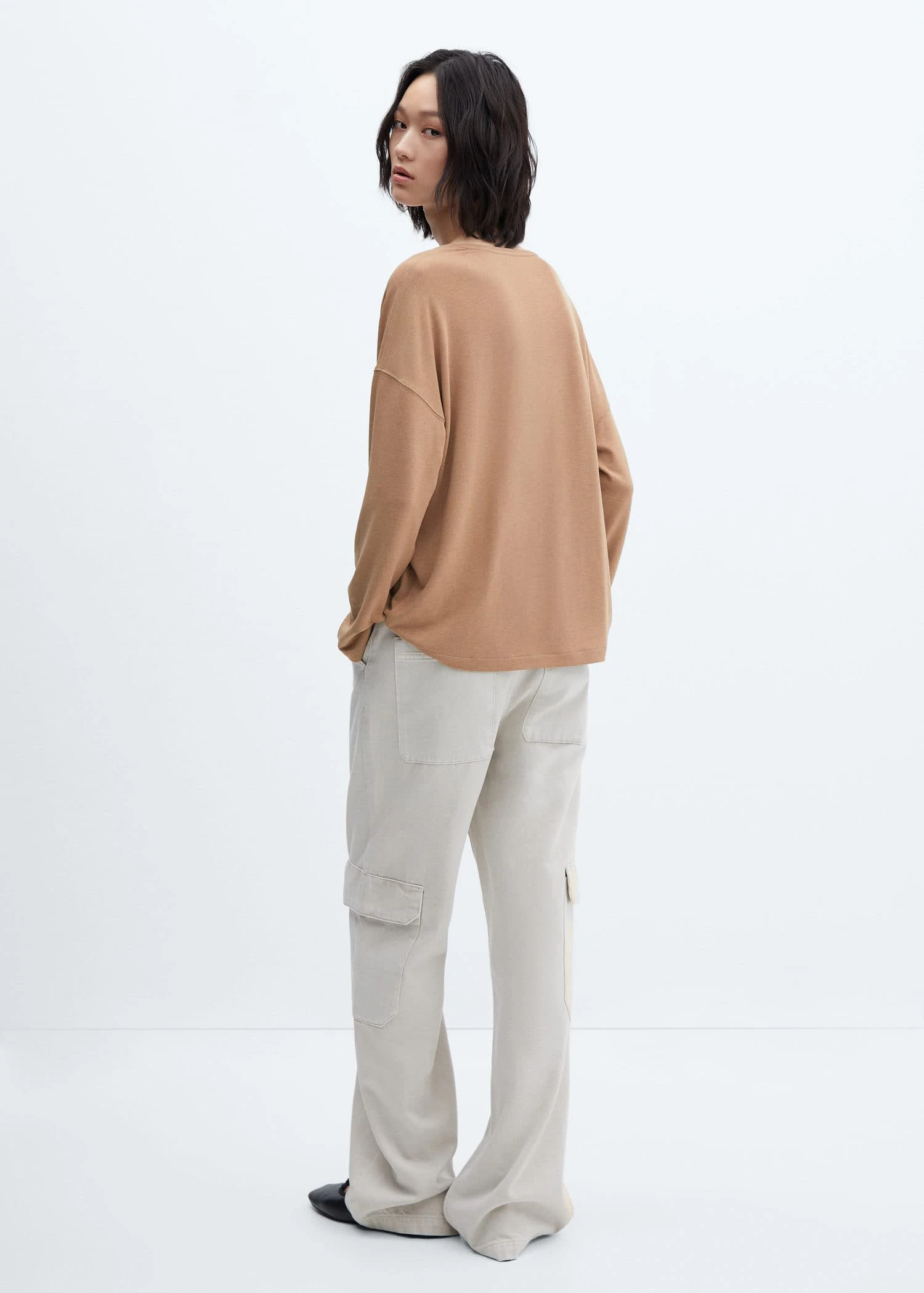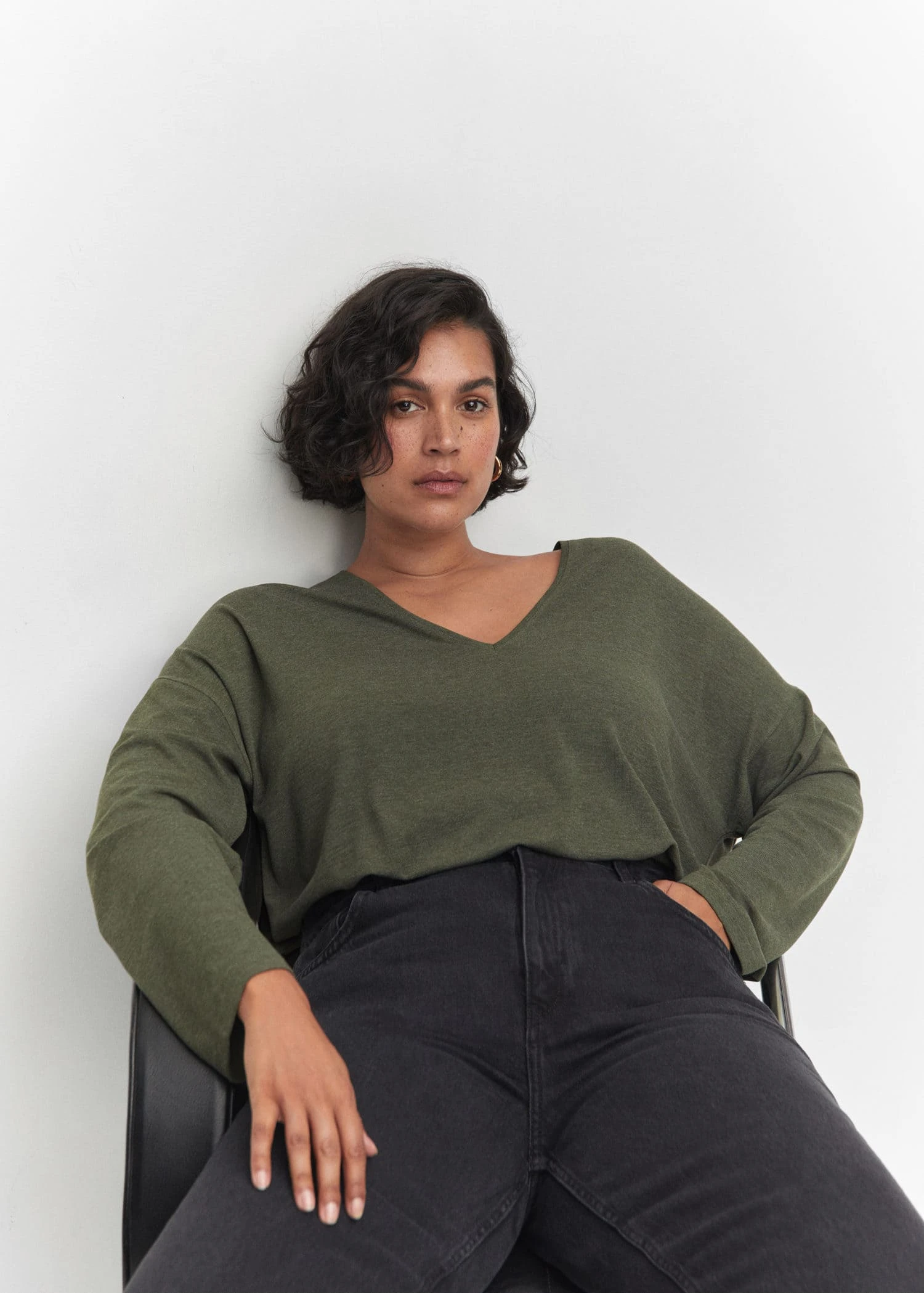 tissu fluide, coupe droite, col en v, manches longues, disponible plusComposition: 49% viscose,47% polyester,4% elasthanne