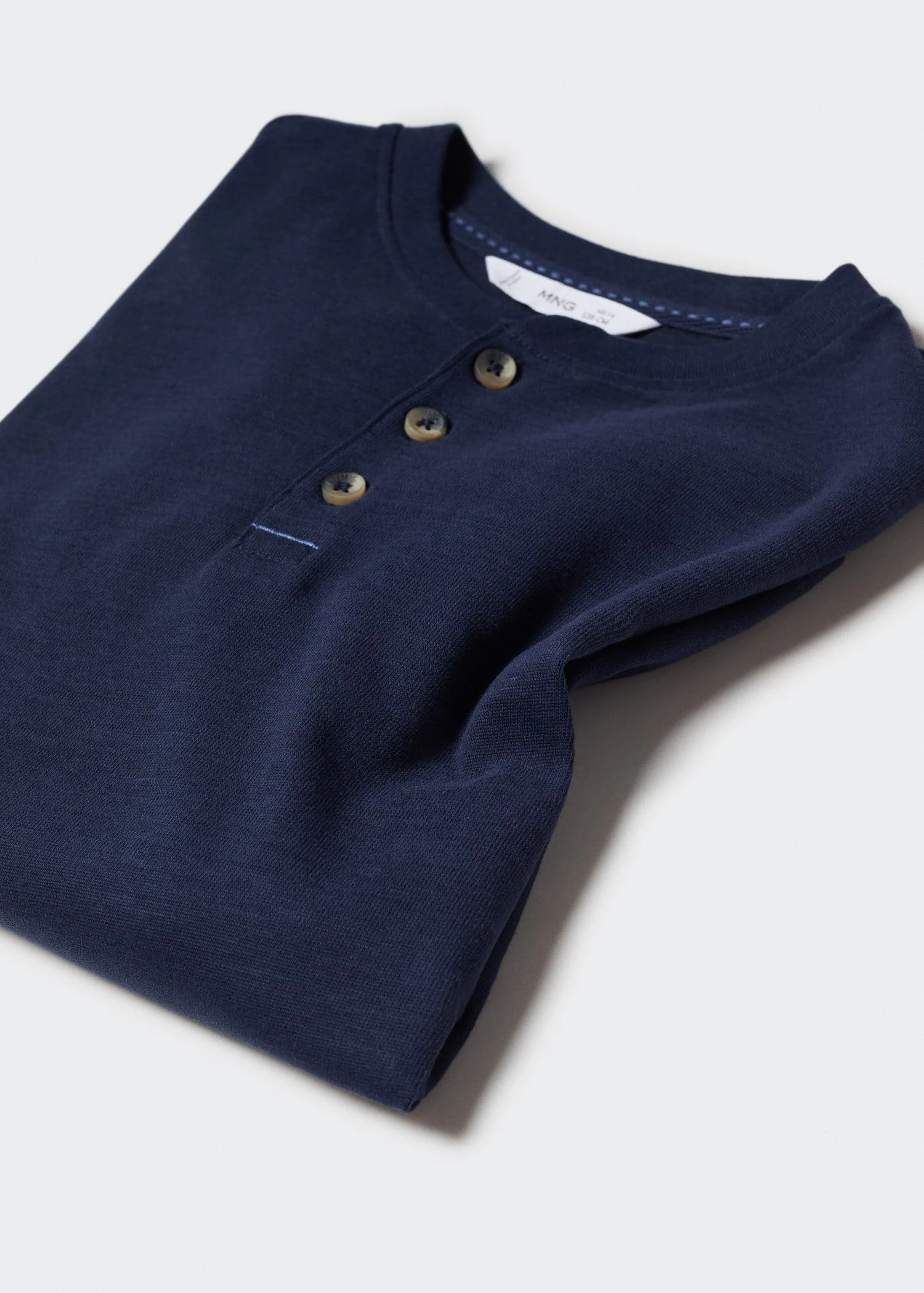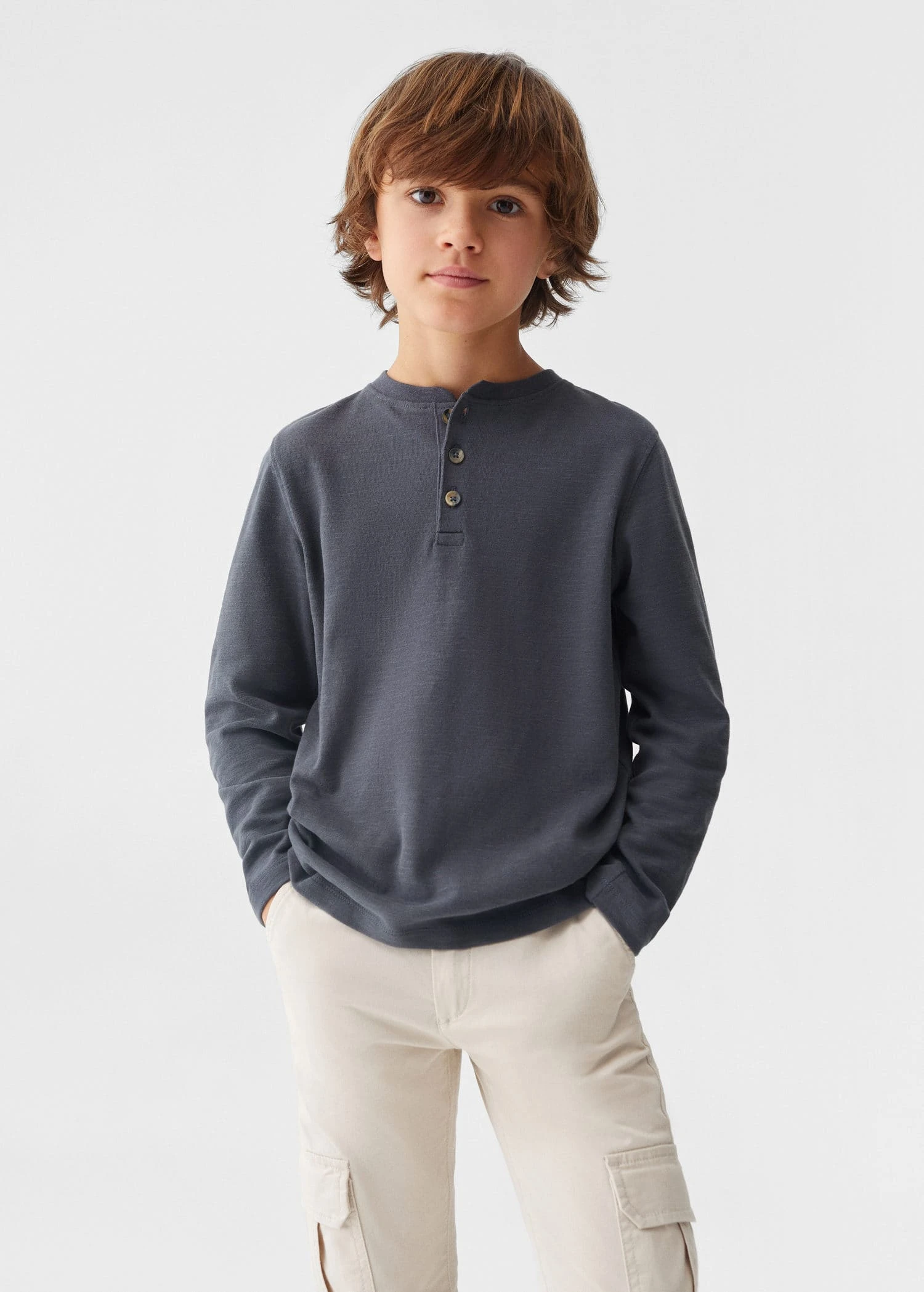 100 % coton, coupe droite, col rond, manches longues, col boutonneComposition: 100% coton