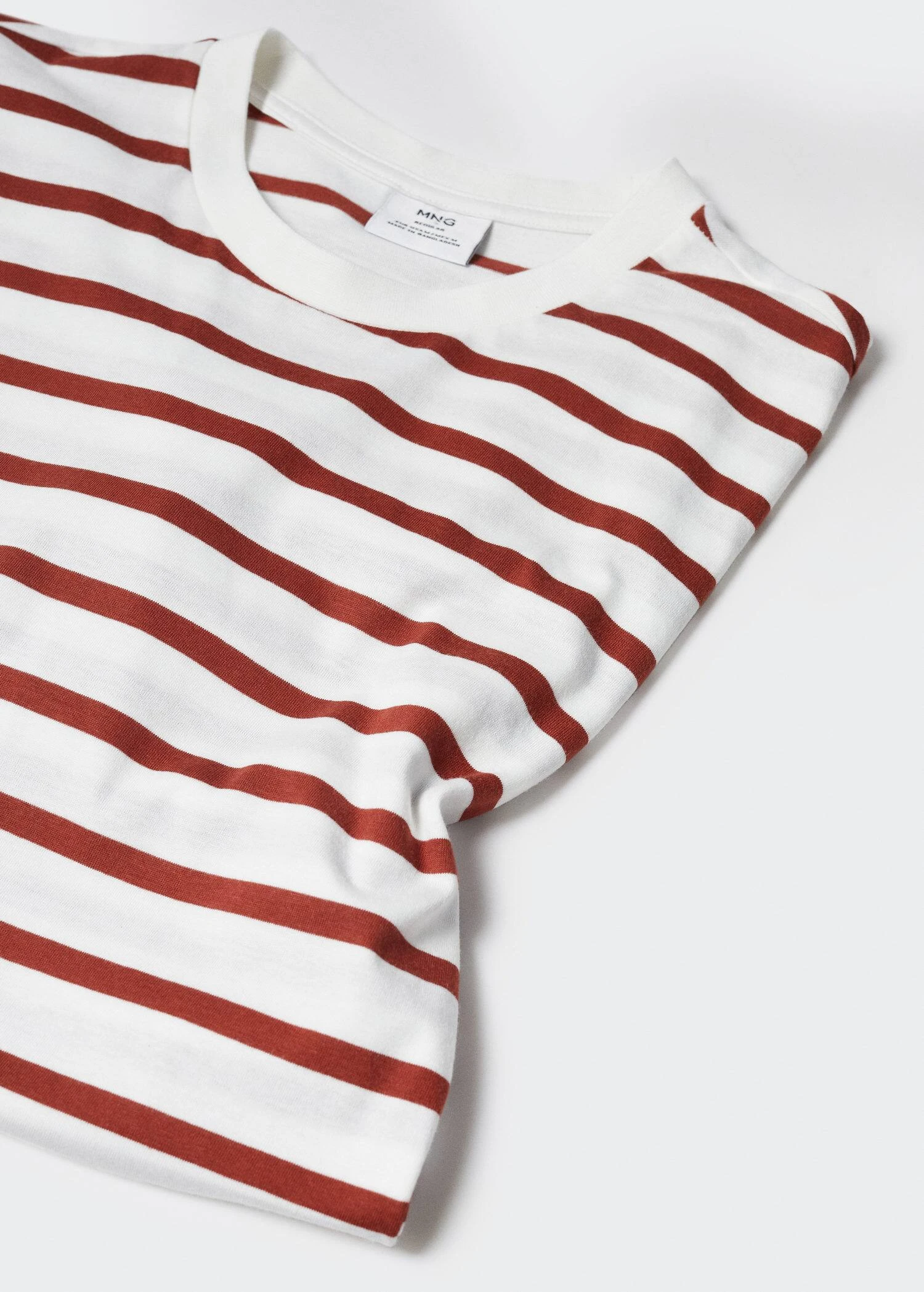 regular-fit, tissu en coton et modal melanges, tissu leger, imprime a rayures horizontales, manches courtes, bas droit, le mannequin mesure 187 cm et porte une taille mComposition: 50% coton,50% modal