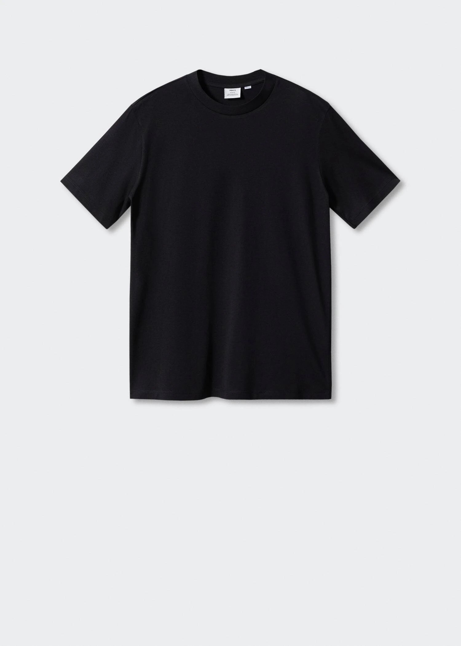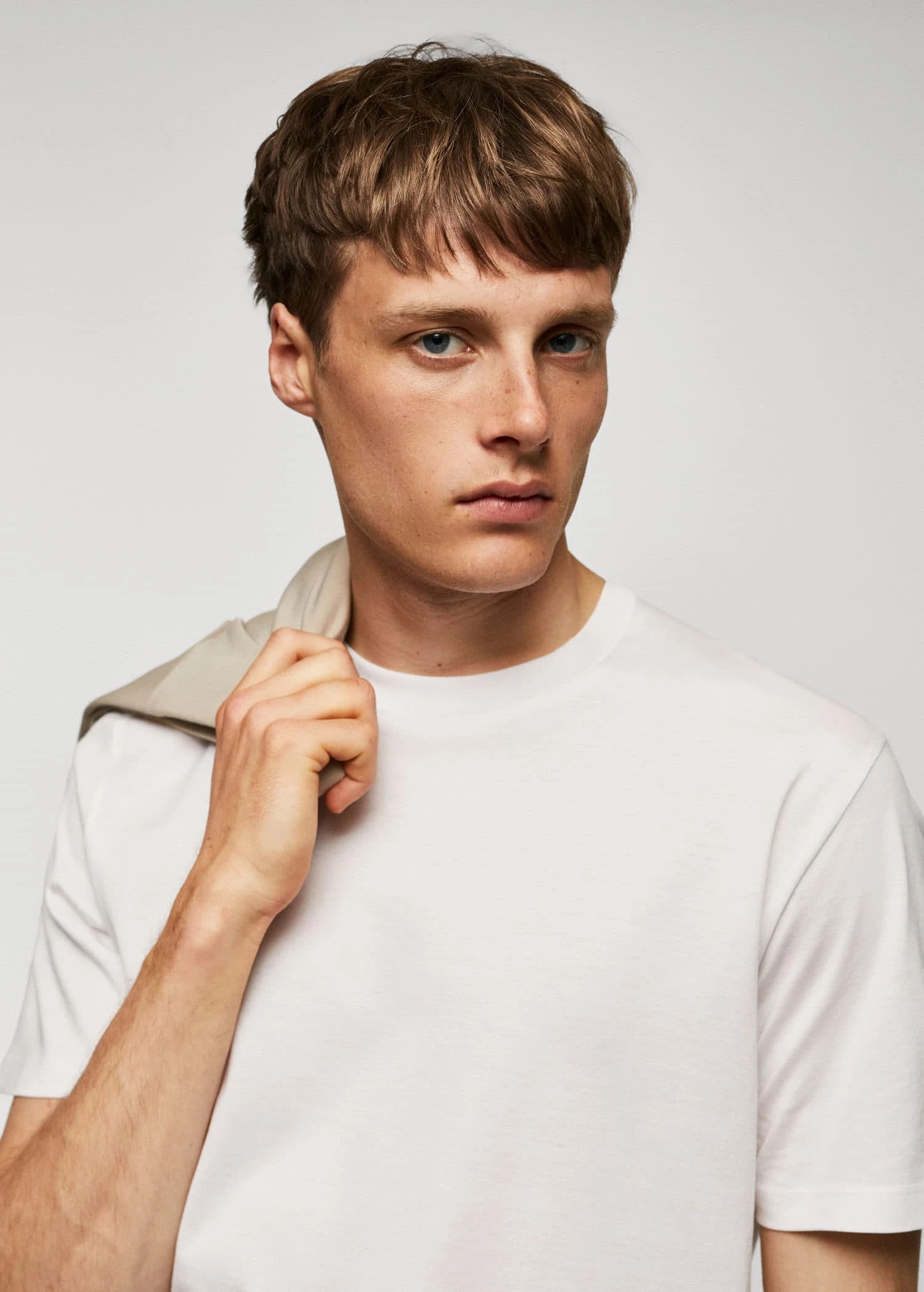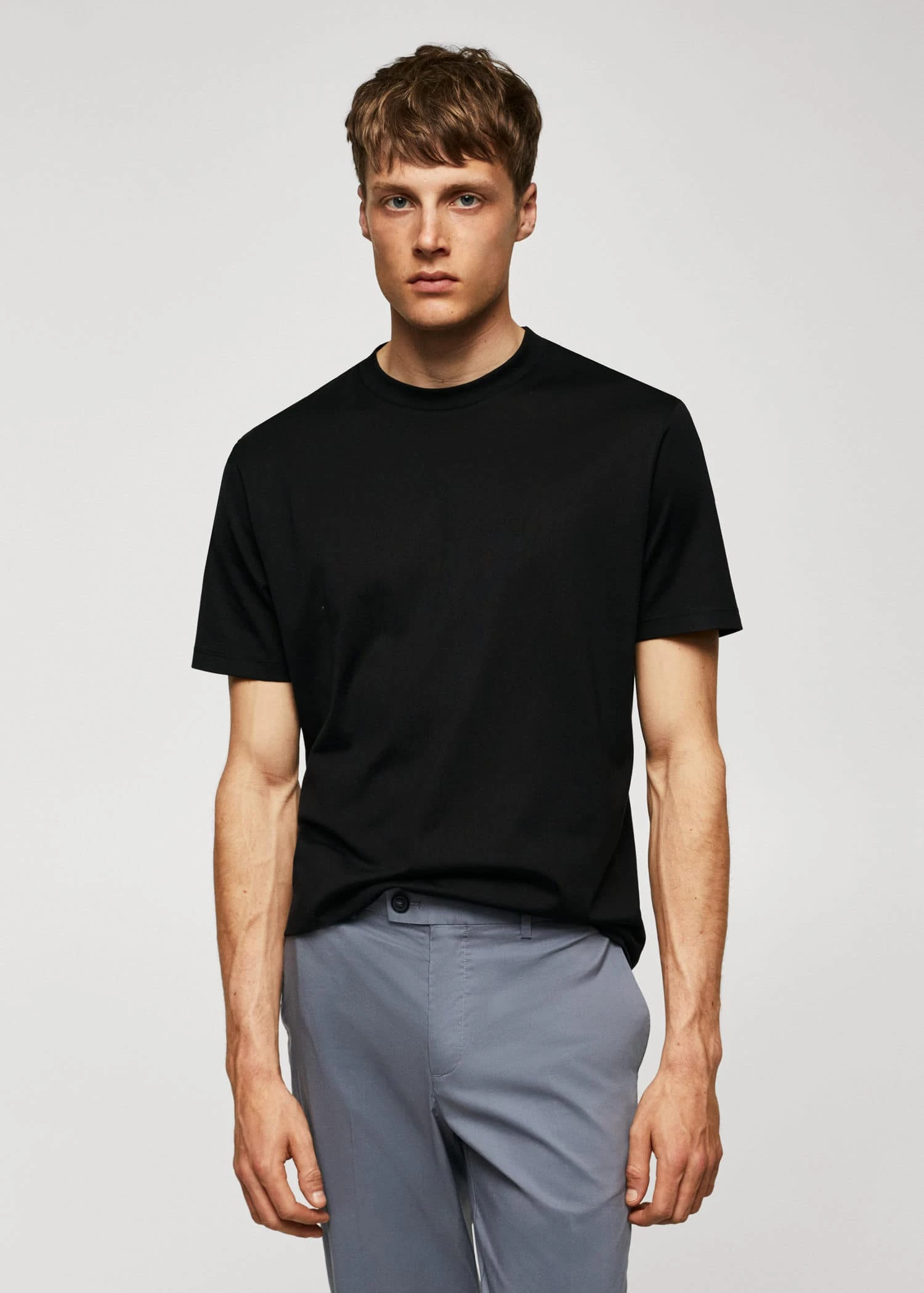 les essentiels : concus pour durer, tissu 100 % coton, 100 % coton, tissu leger de coton, regular-fit, finition mercerisee, col rond, manches courtes, le mannequin porte une taille mComposition: 100% coton