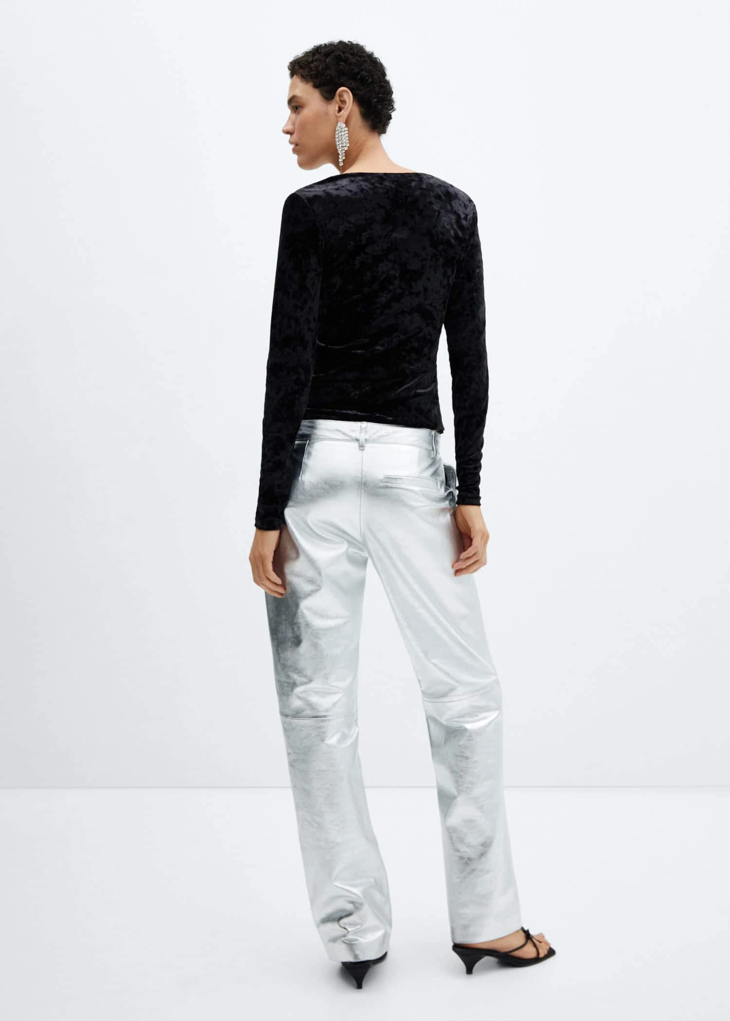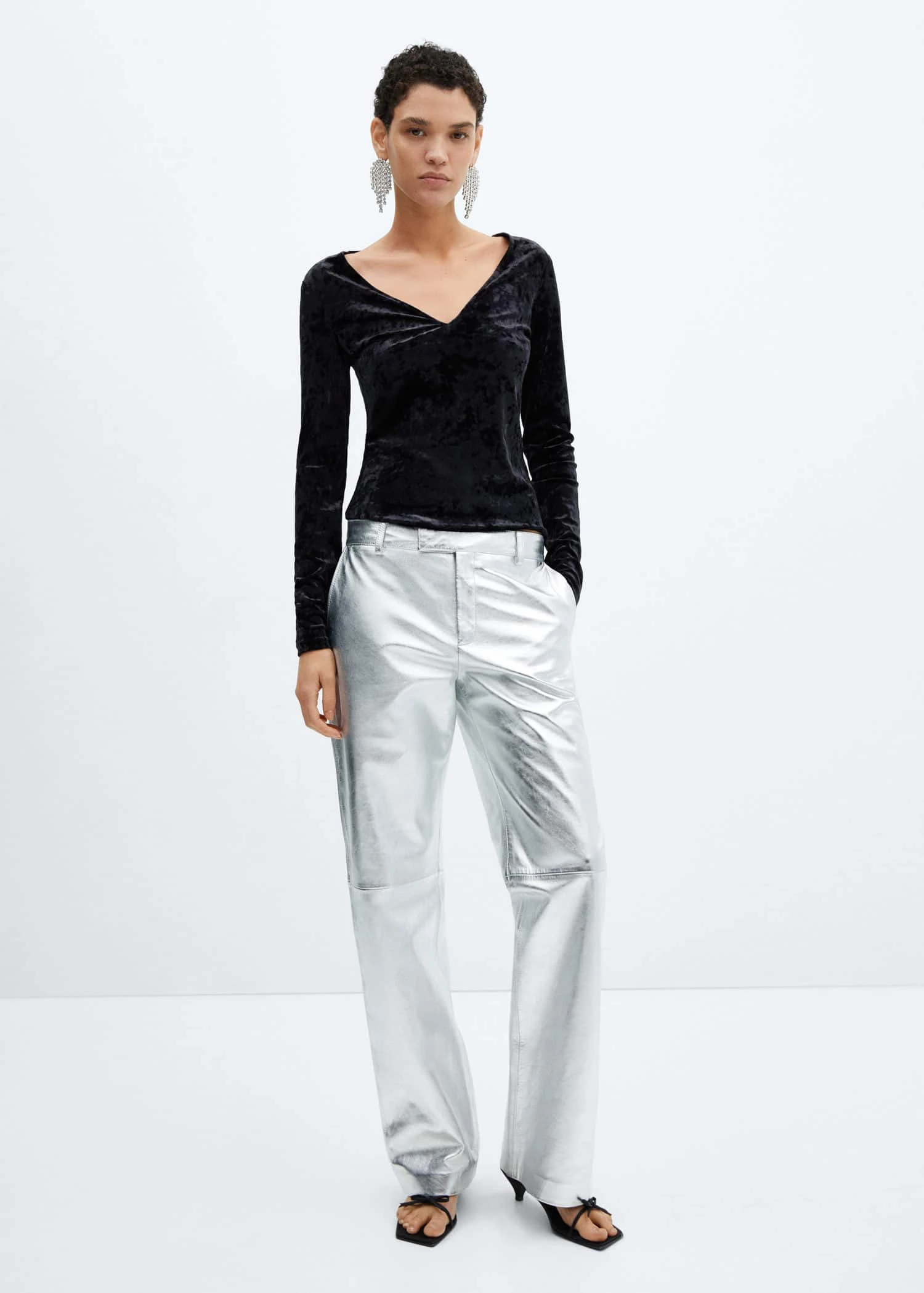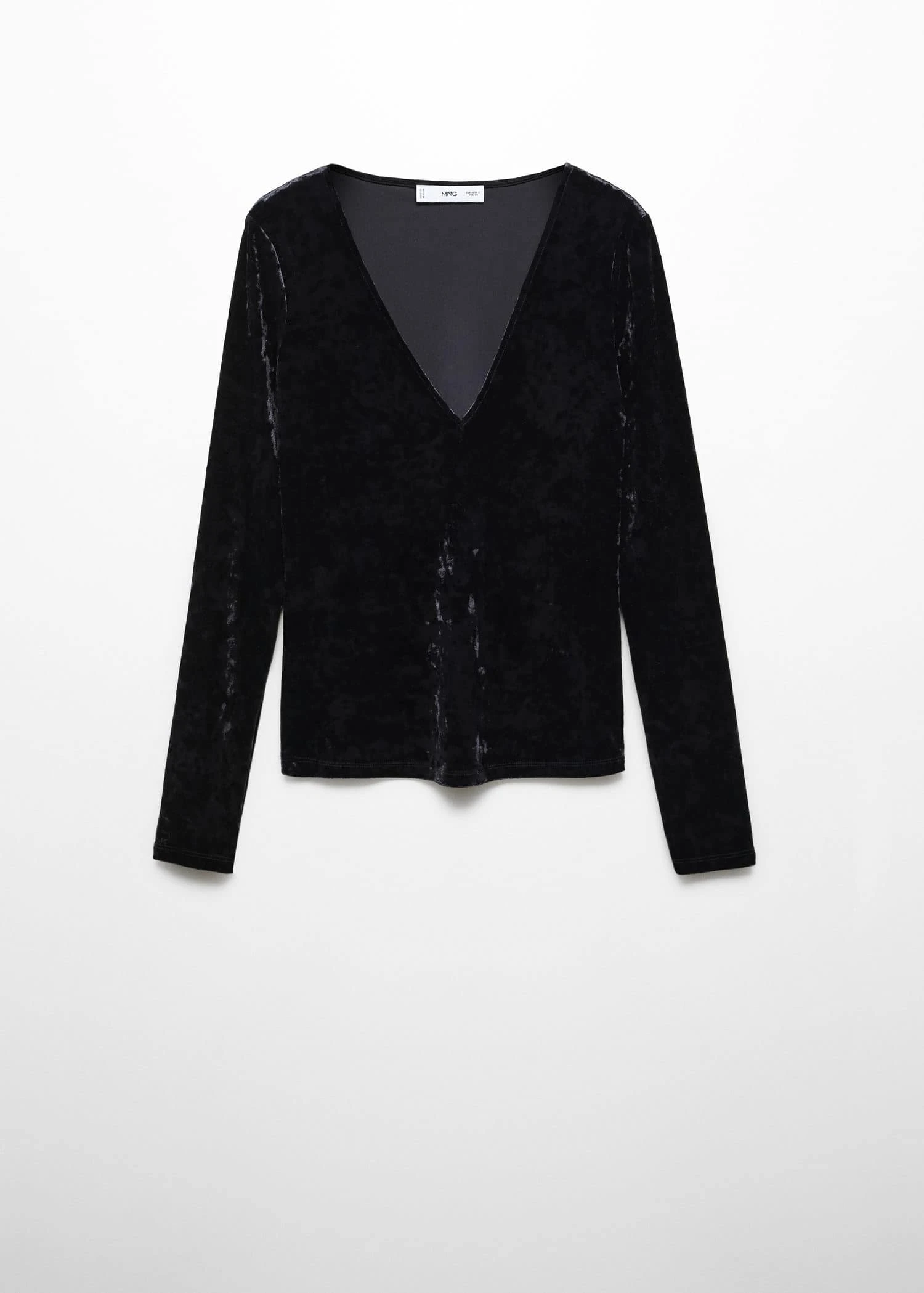 tissu en velours, droit, col en v, manches longues, sans fermeture, total look, collection fetes et ceremonies.Composition: 92% polyester,8% elasthanne. Lisiere: 100% viscose