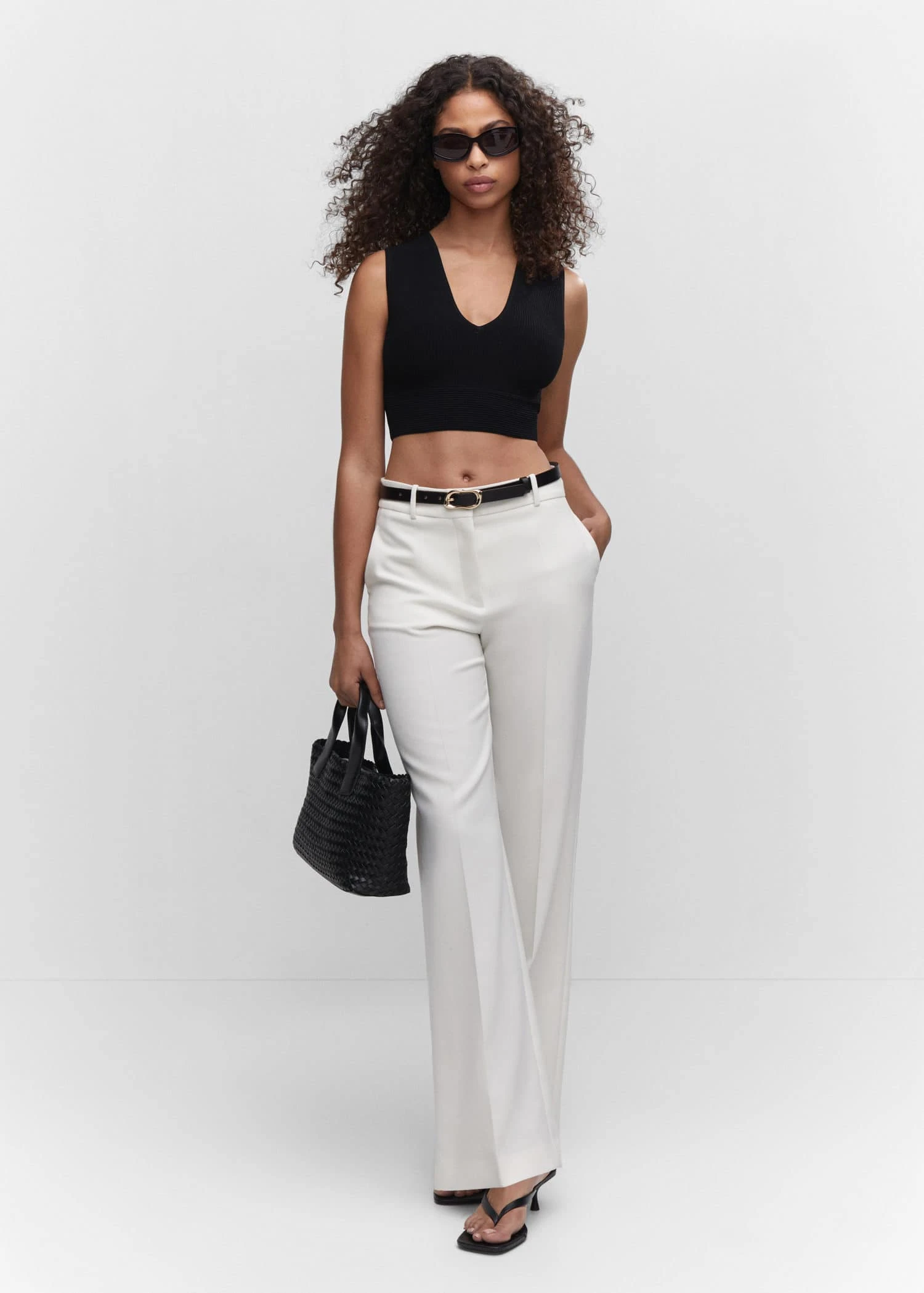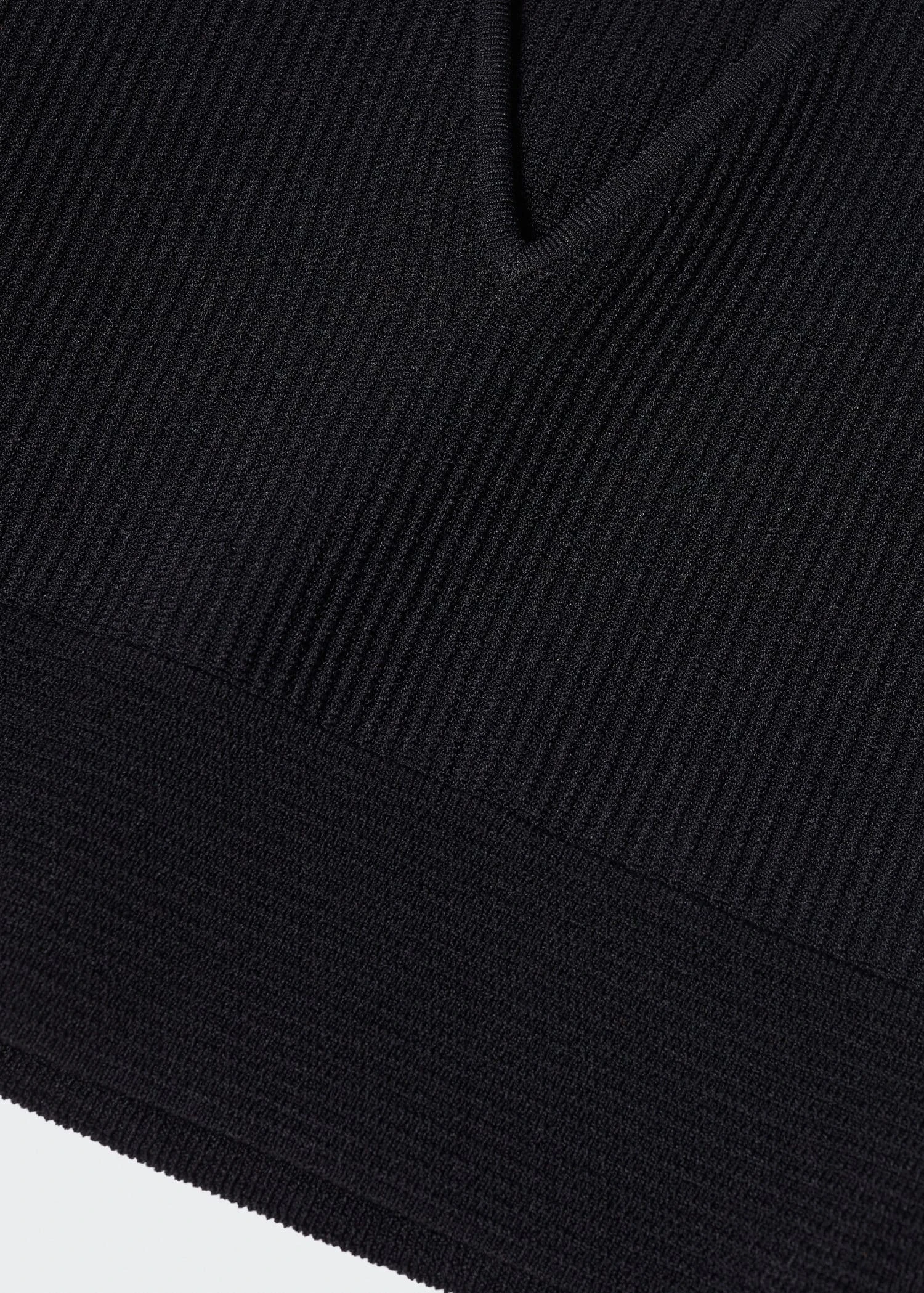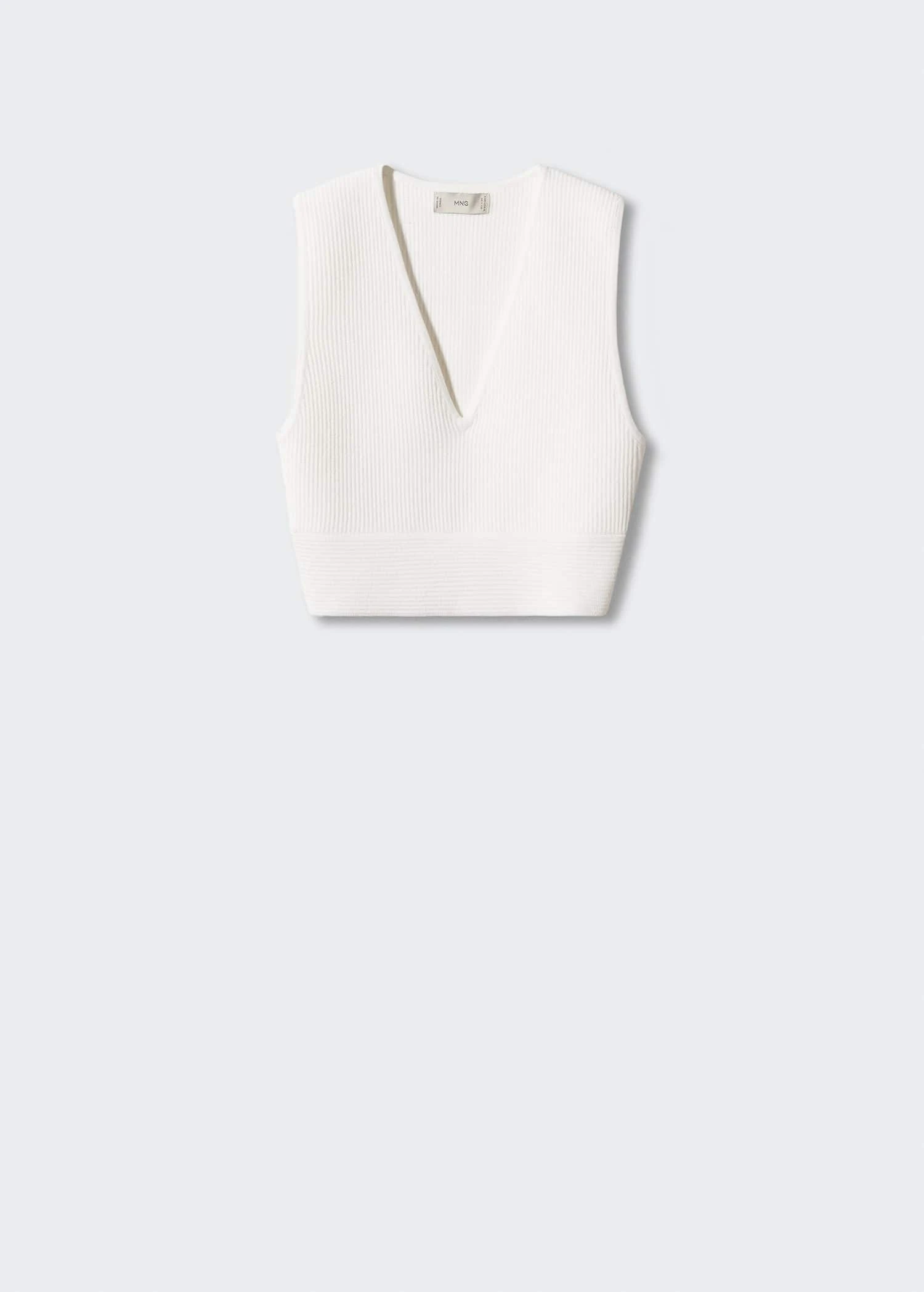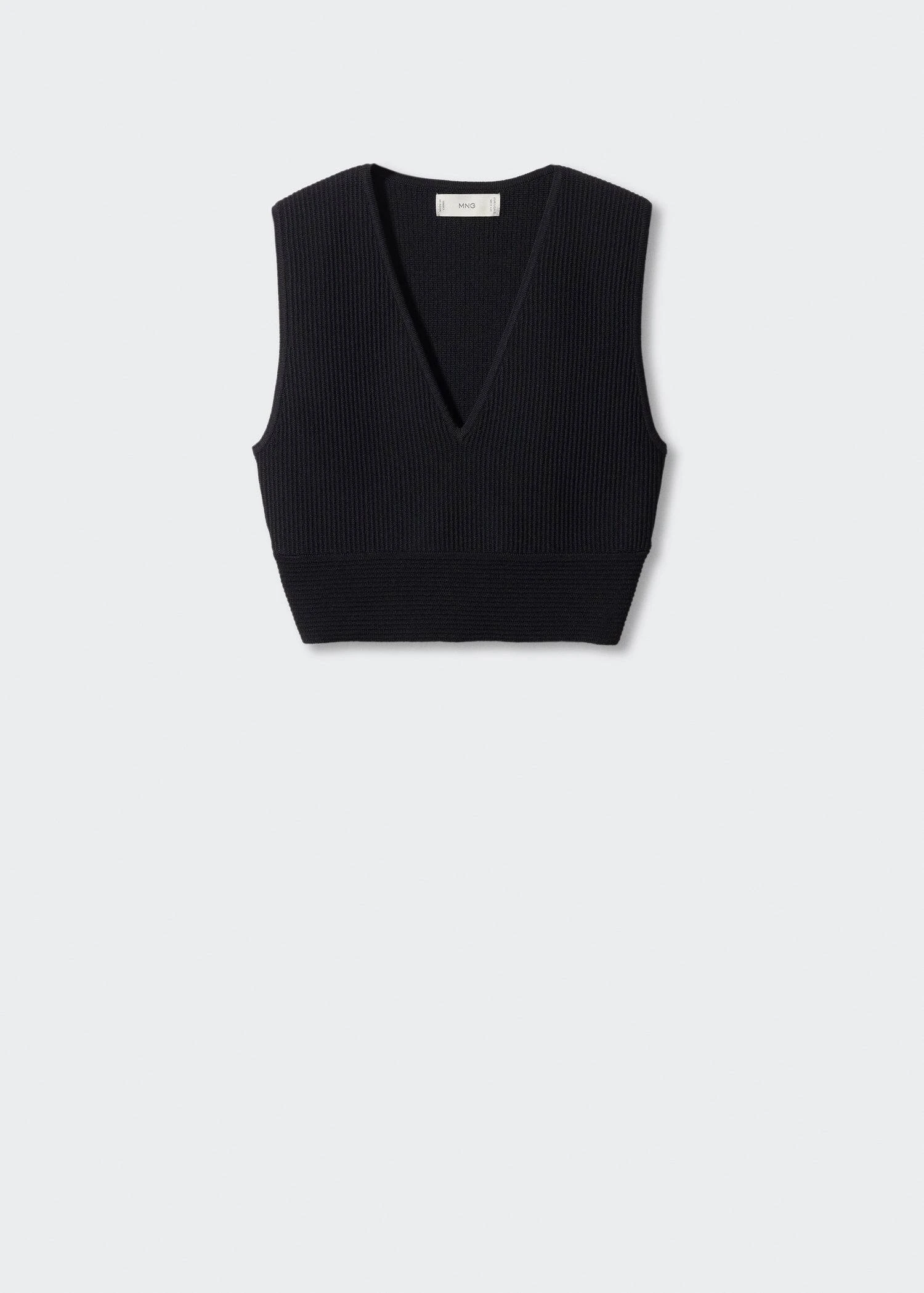 tissu en maille cotelee, coupe cintree, style crop, col en v, sans manches, sans fermetureComposition: 52% viscose,46% polyamide,2% elasthanne