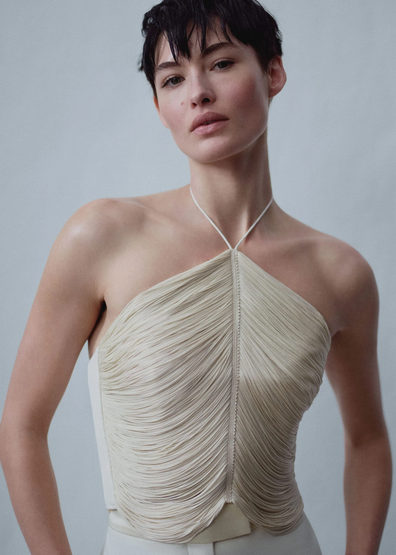 le haut elegant avec une multitude de franges vous mettra en valeur lors de tout type d’evenement. associez-le a un pantalon palazzo ou a une maxijupe et arborez un look parfait pour les evenements du moment, tissu a bords franges, coupe cintree, coupe courte, emmanchures americaines, bretelles fines, bas asymetrique, fabrique au portugal, short denim fleurs, collection fetes et ceremonies, capsule : une collection de vetements en edition limitee, fabriques avec les meilleurs tissus et le plus grand soin en matiere de patrons, afin d’obtenir les meilleures finitions. cette collection exclusive est concue pour les evenements et les occasions les plus chics.COMPOSITION:66% POLYESTER,34% ELASTHANNE. FRANGES:100% VISCOSE. CÔTÉS:49% ACETATE,48% VISCOSE,3% ELASTHANNE. BRETELLES:100% POLYESTER