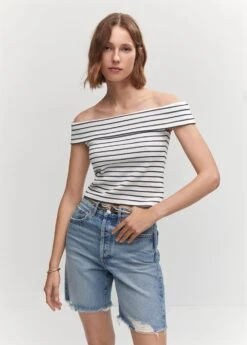 tissu en maille, coupe cintree, epaules denudees, manches courtes, sans fermetureComposition: 78% coton,18% polyester,4% elasthanne