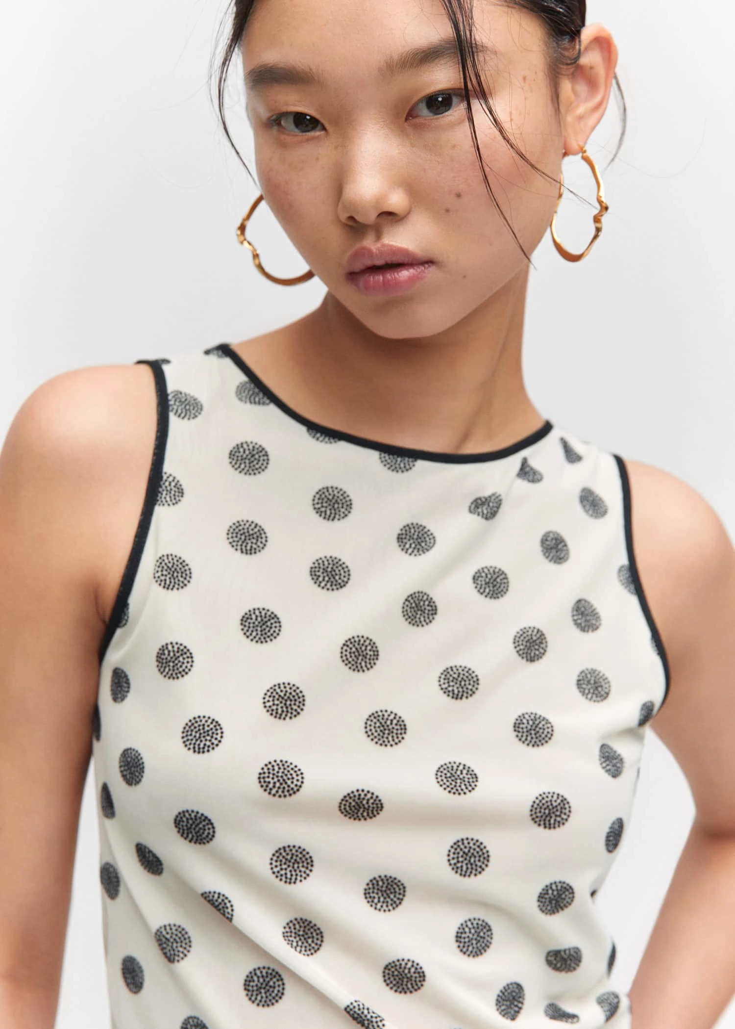tissu fluide, coupe droite, imprime, col rond, bretelles larges, sans manches, ouverture au dos, fermeture boutonnee a l’arriereComposition: 95% polyester,5% elasthanne. Doublure: 100% polyester. Ornement: 100% polyamide