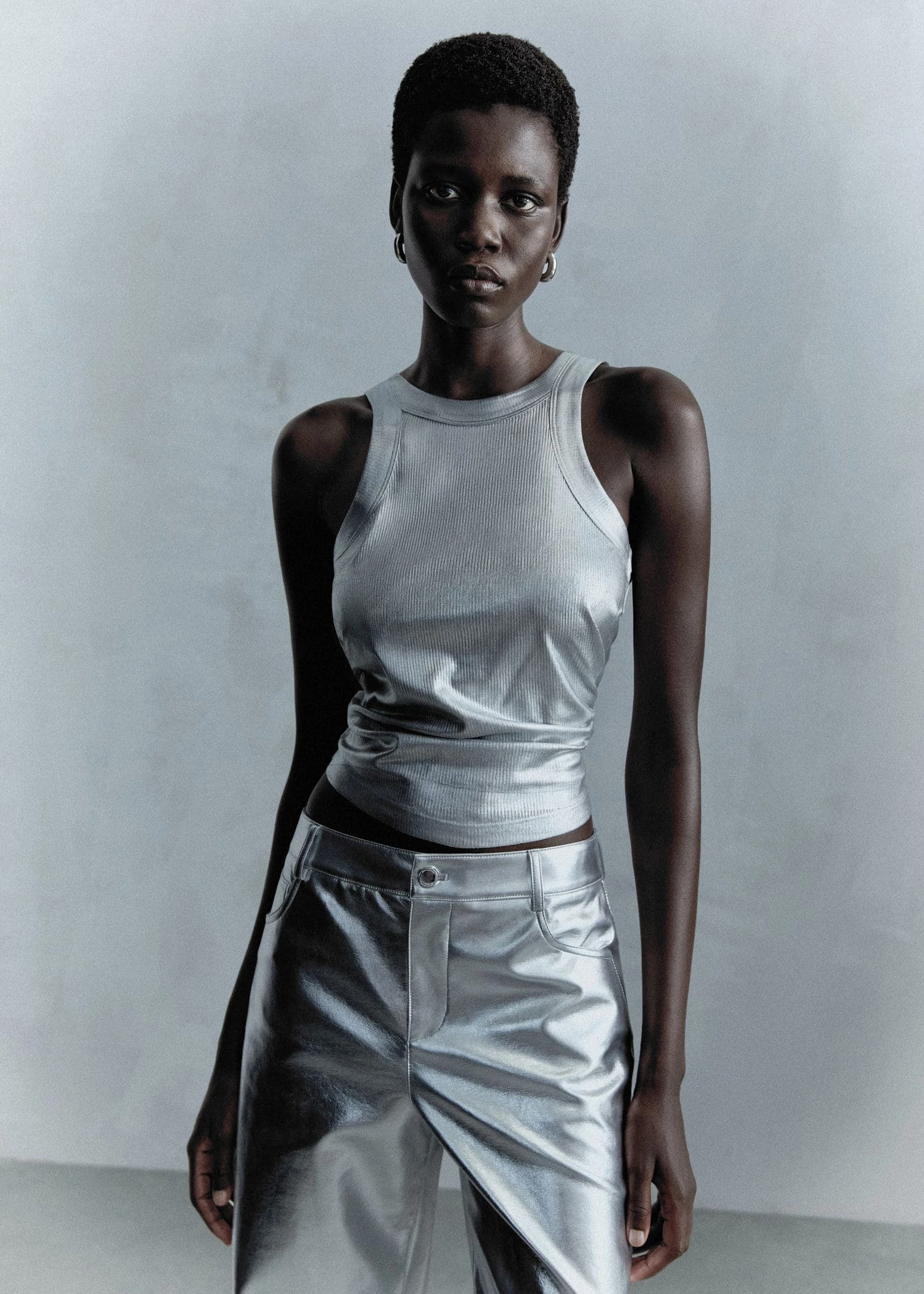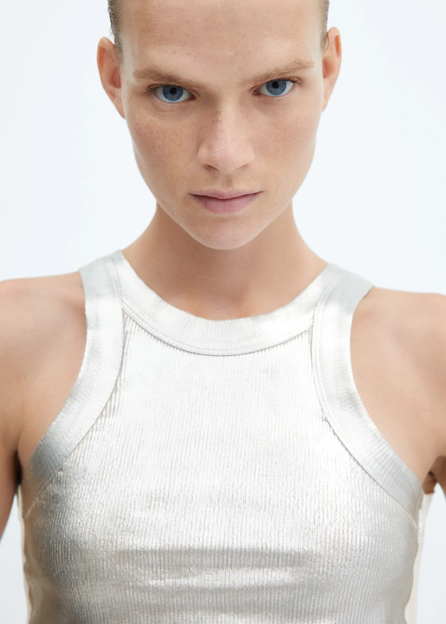 tissu de lyocell, finition metallisee, droit, col rond, bretelles larges, sans manchesComposition: 100% lyocell