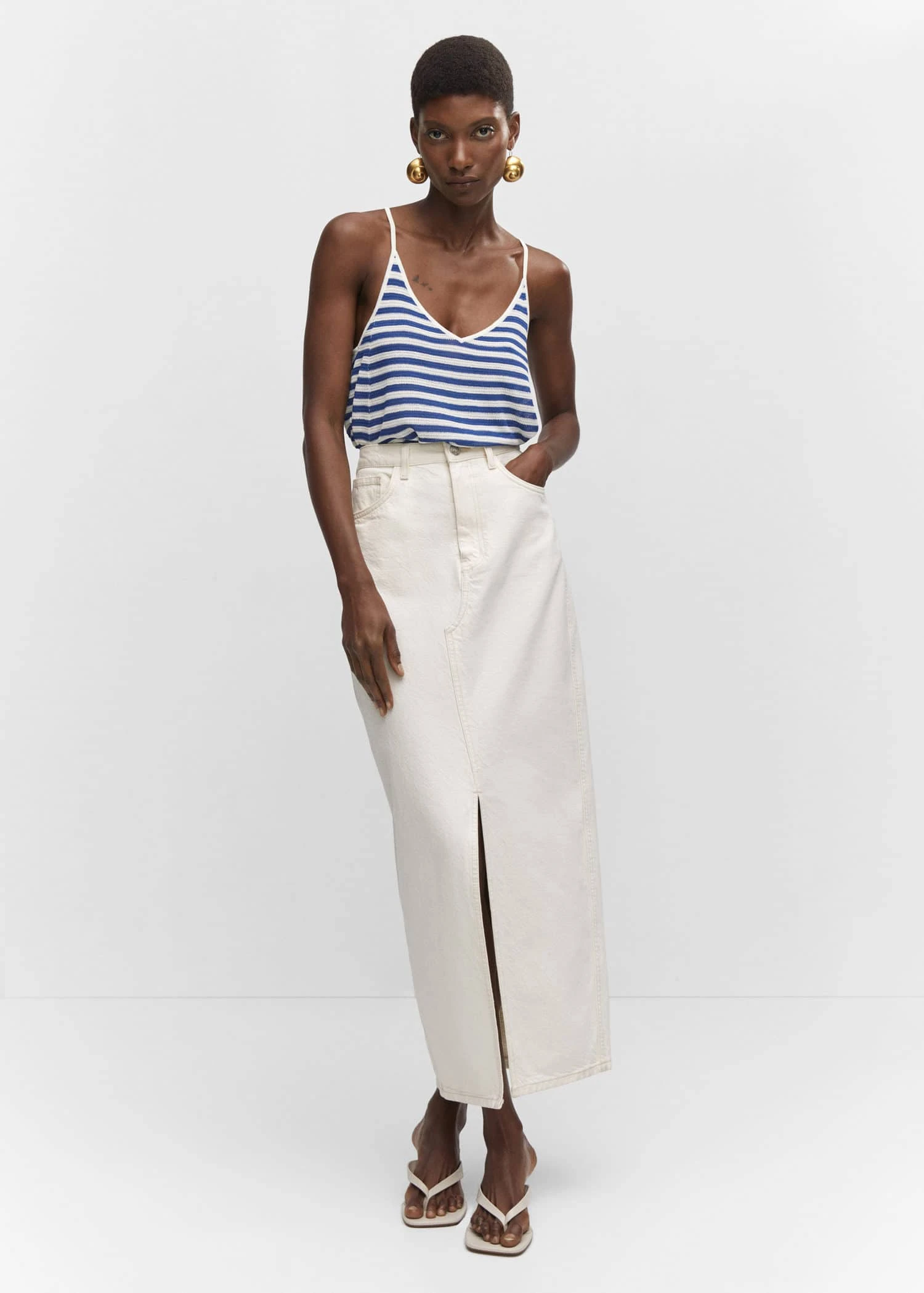 tissu en maille, style oversize, motif raye, col en v, bretelles fines, sans fermetureComposition: 54% viscose,46% polyester