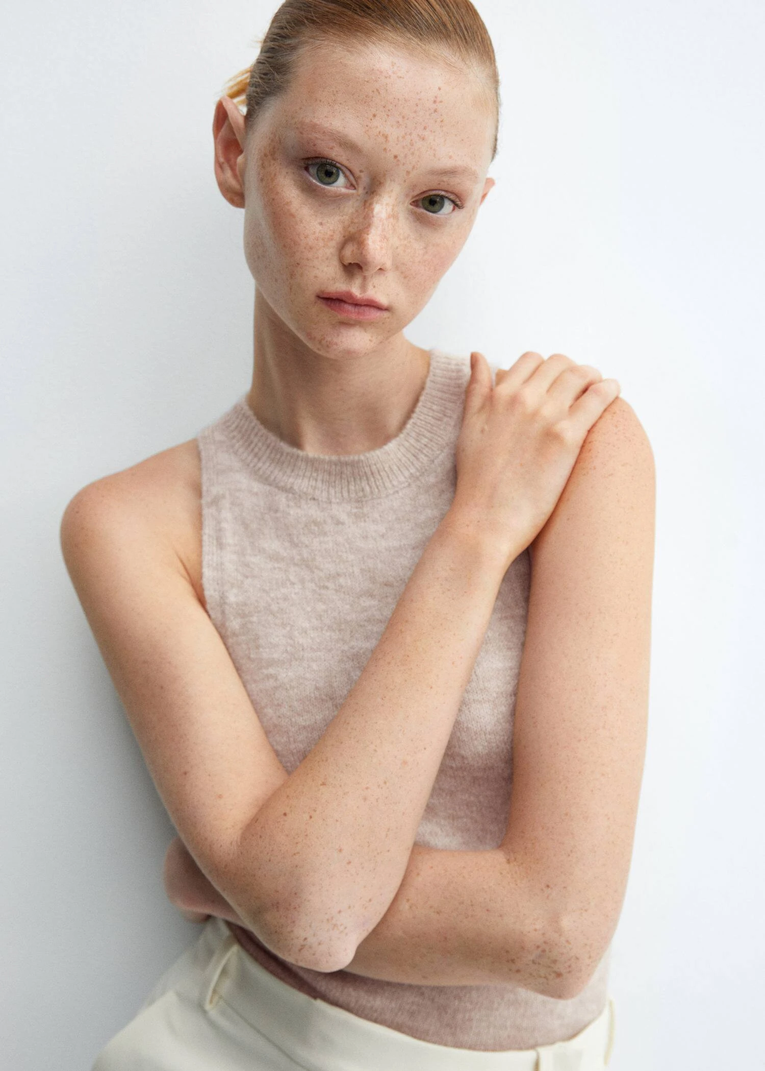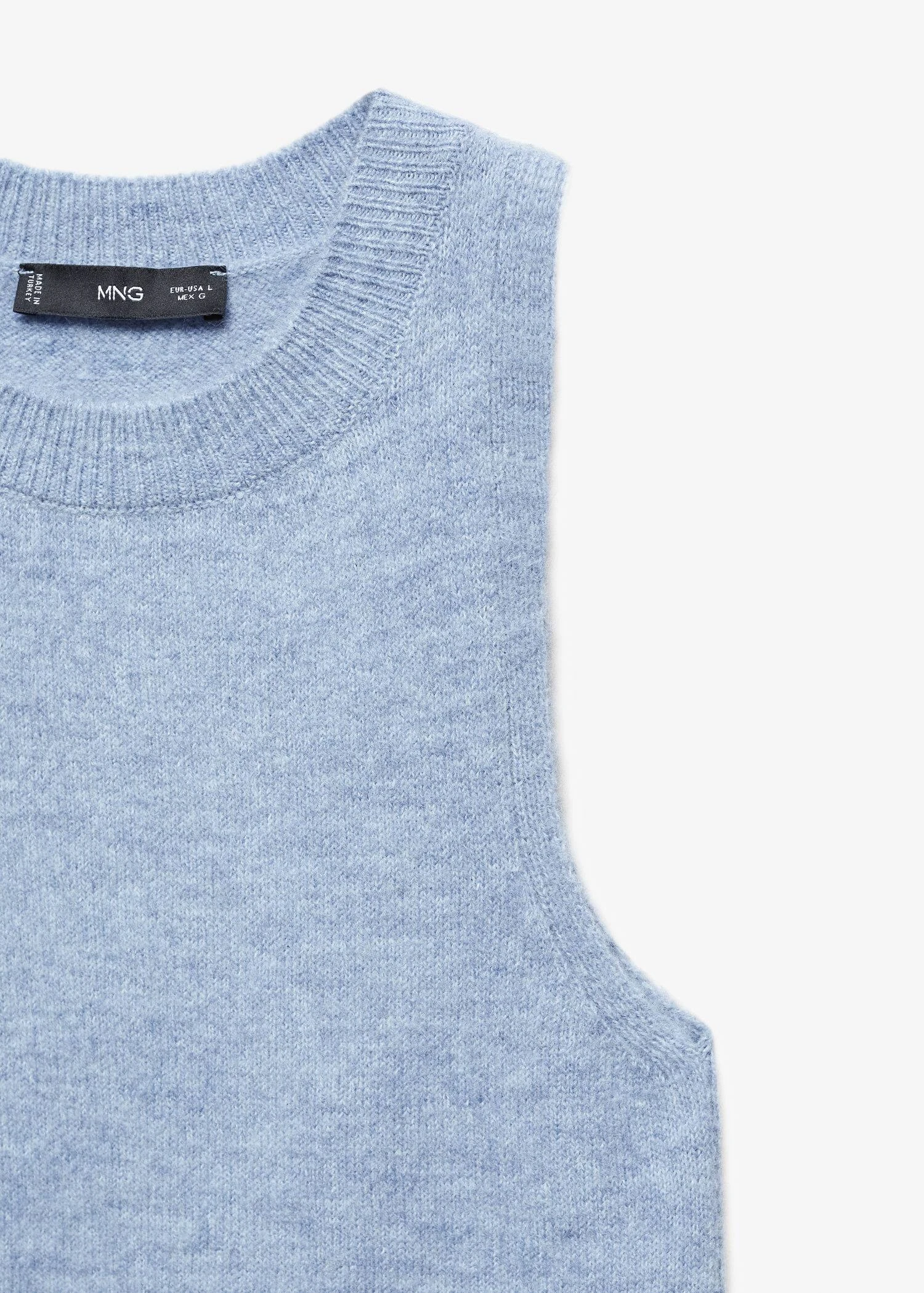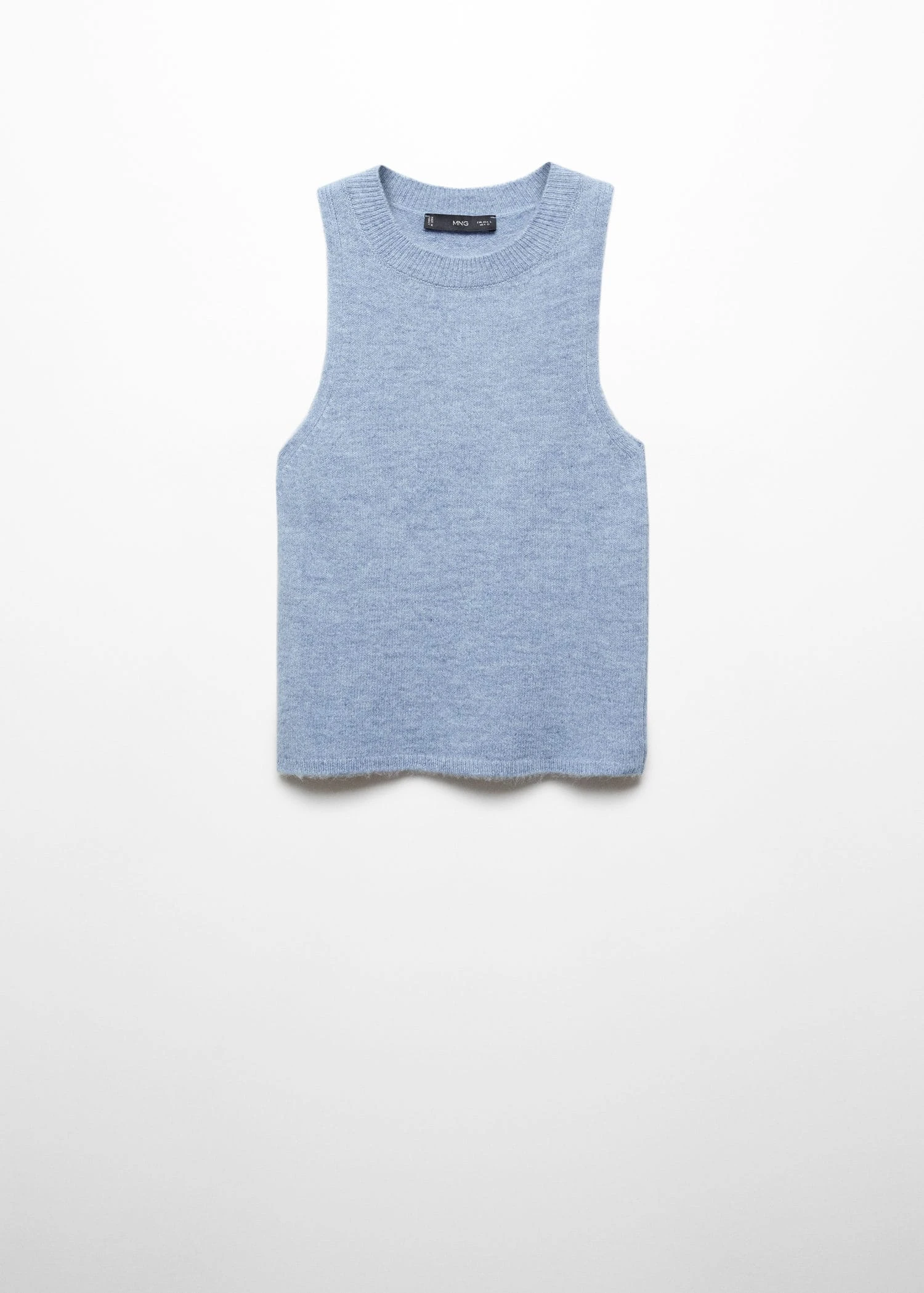tissu de laine melange, maille moyenne, droit, col rond, sans manches, bords cotelesComposition: 60% acrylique,31% polyester,9% laine