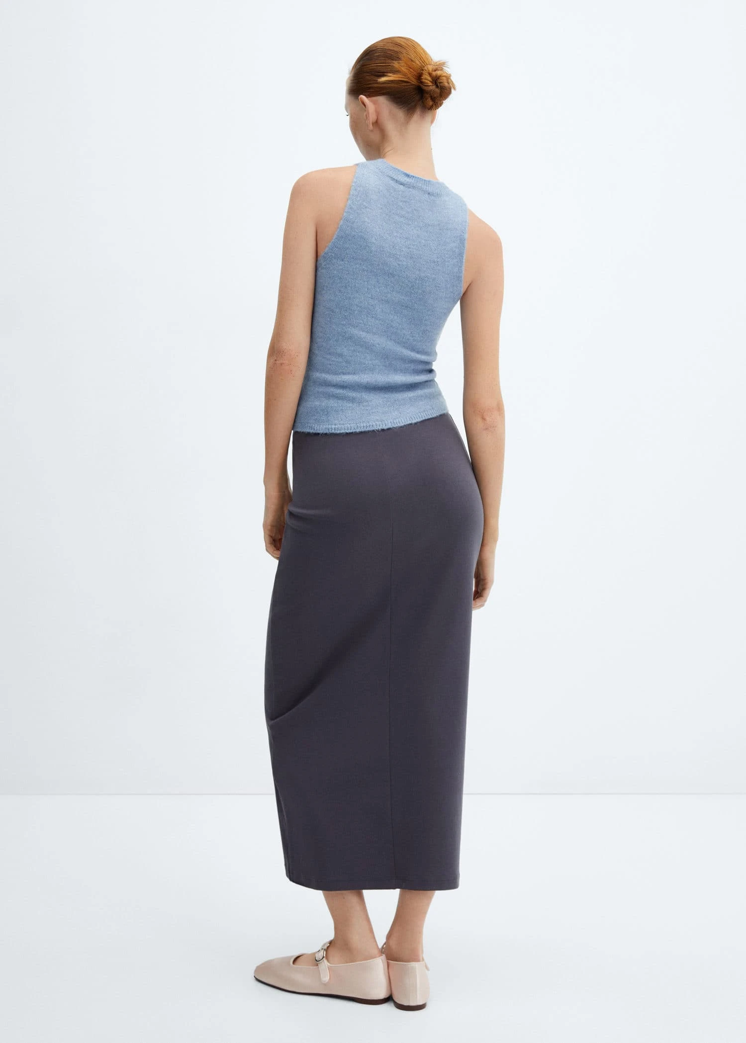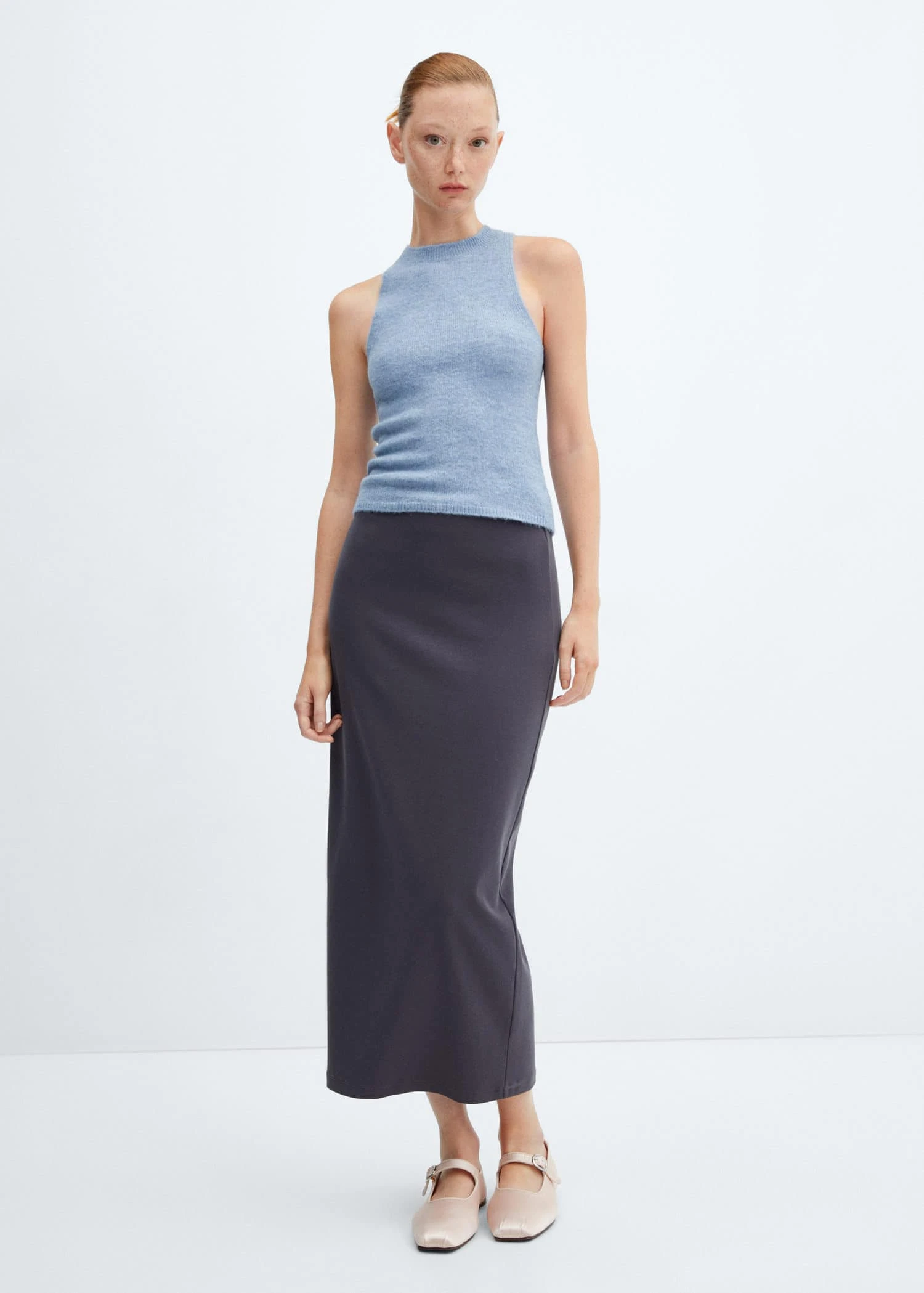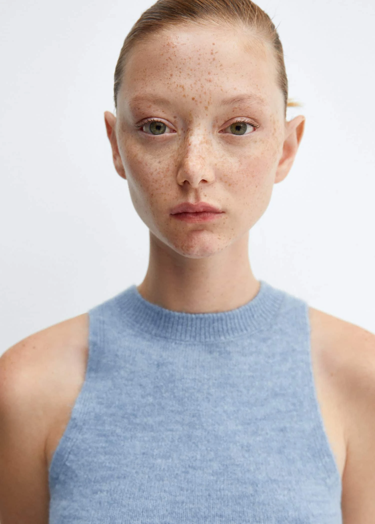 tissu de laine melange, maille moyenne, droit, col rond, sans manches, bords cotelesComposition: 60% acrylique,31% polyester,9% laine
