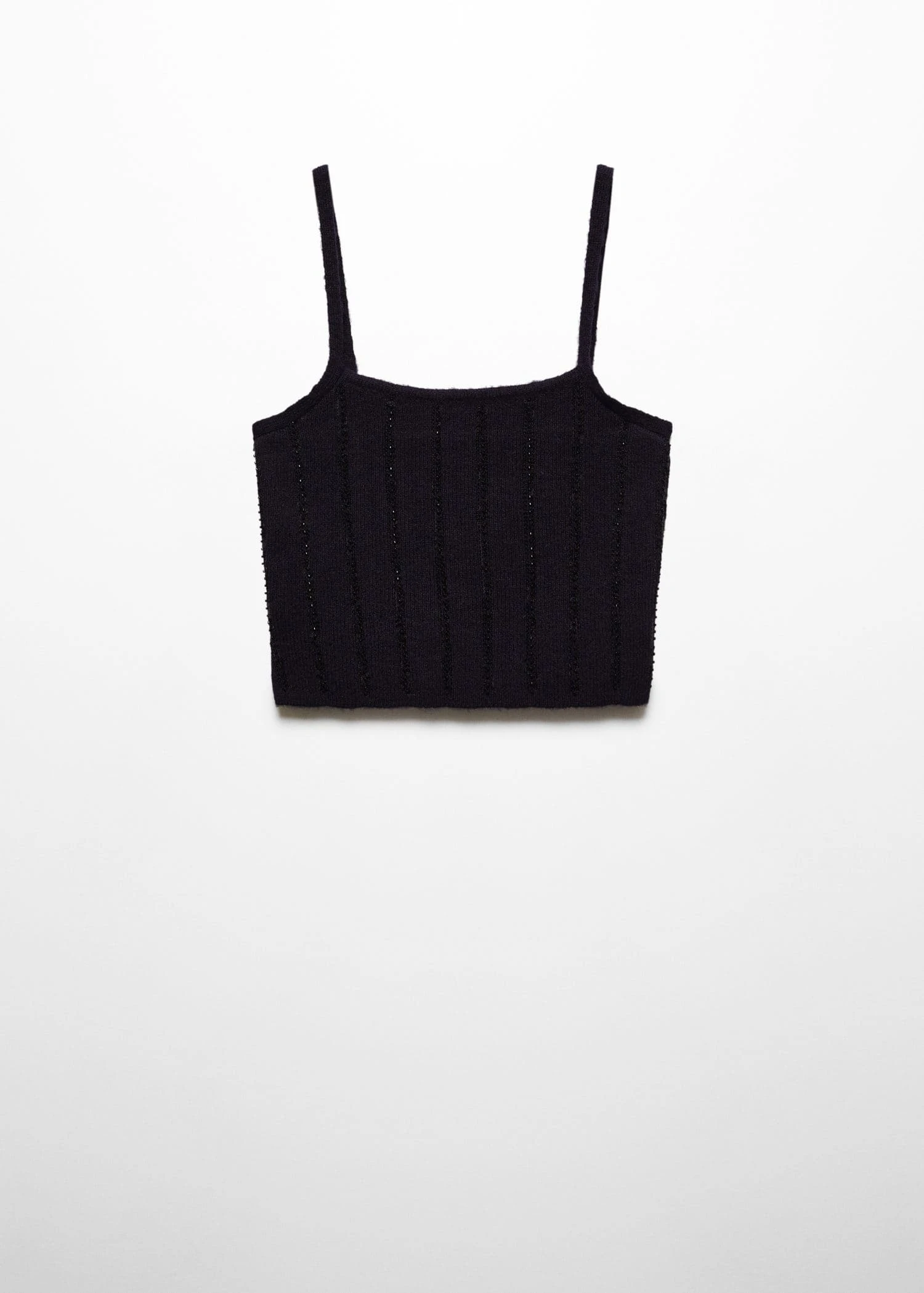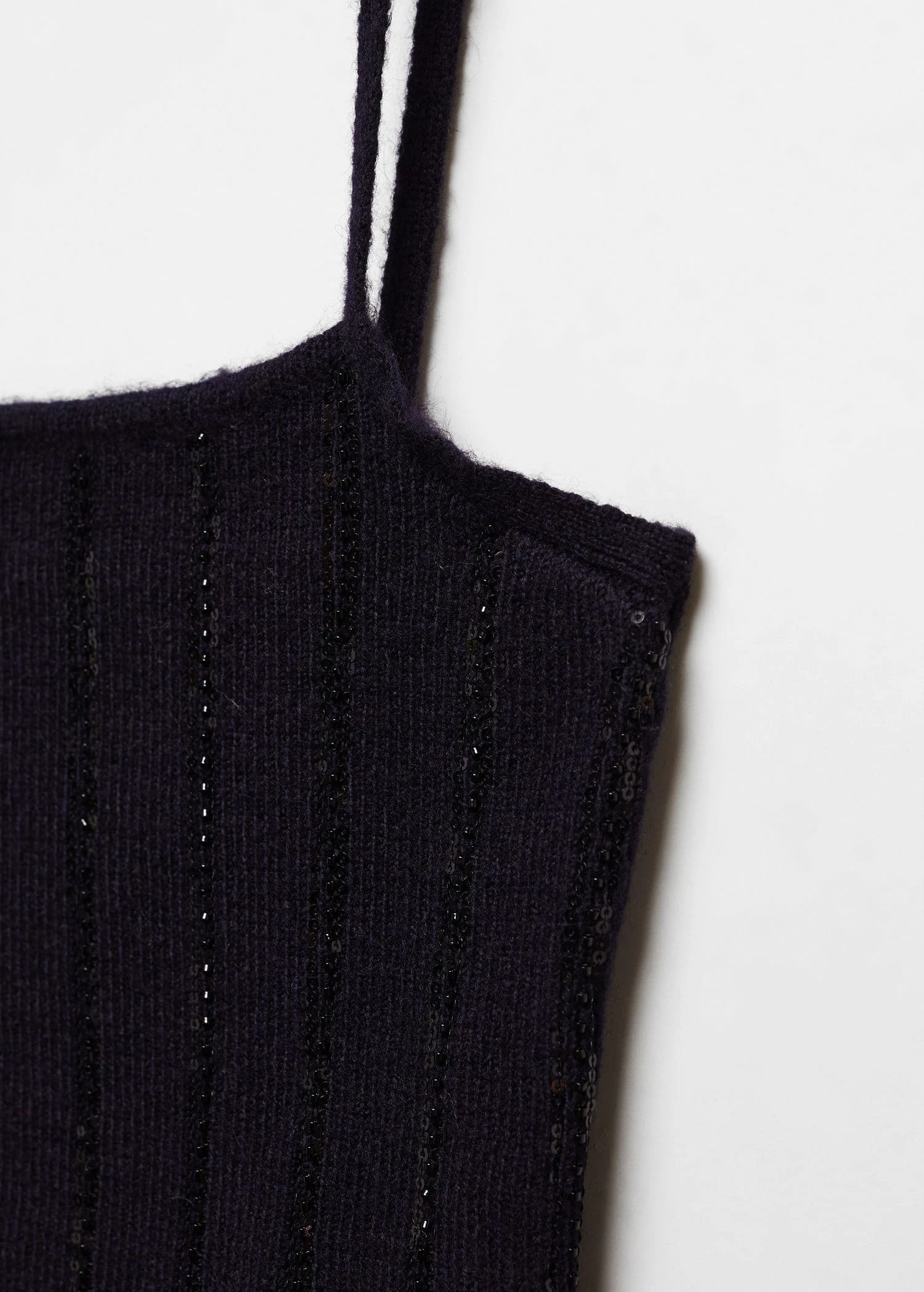tissu de laine melange, tissu en grosse maille, coupe courte, coupe cintree, col echancre, sans manches, bretelles fines, total look, collection fetes et ceremoniesComposition: 52% polyester,24% acrylique,13% polyamide,11% laine