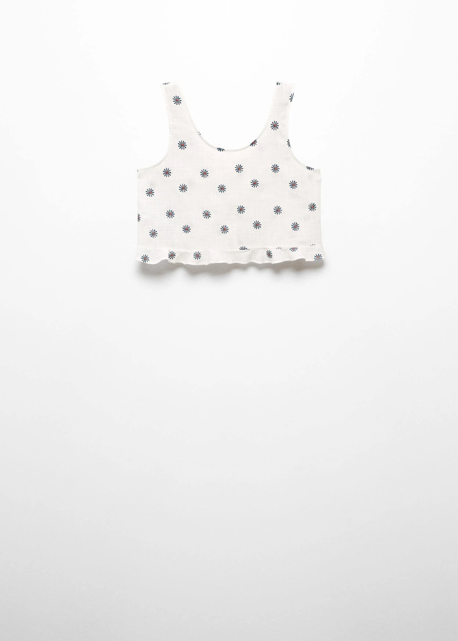 tissu 100 % coton, coupe droite, style crop, col rond, bretelles larges, sans fermeture, microfleurs brodees, total look.Composition: 100% coton