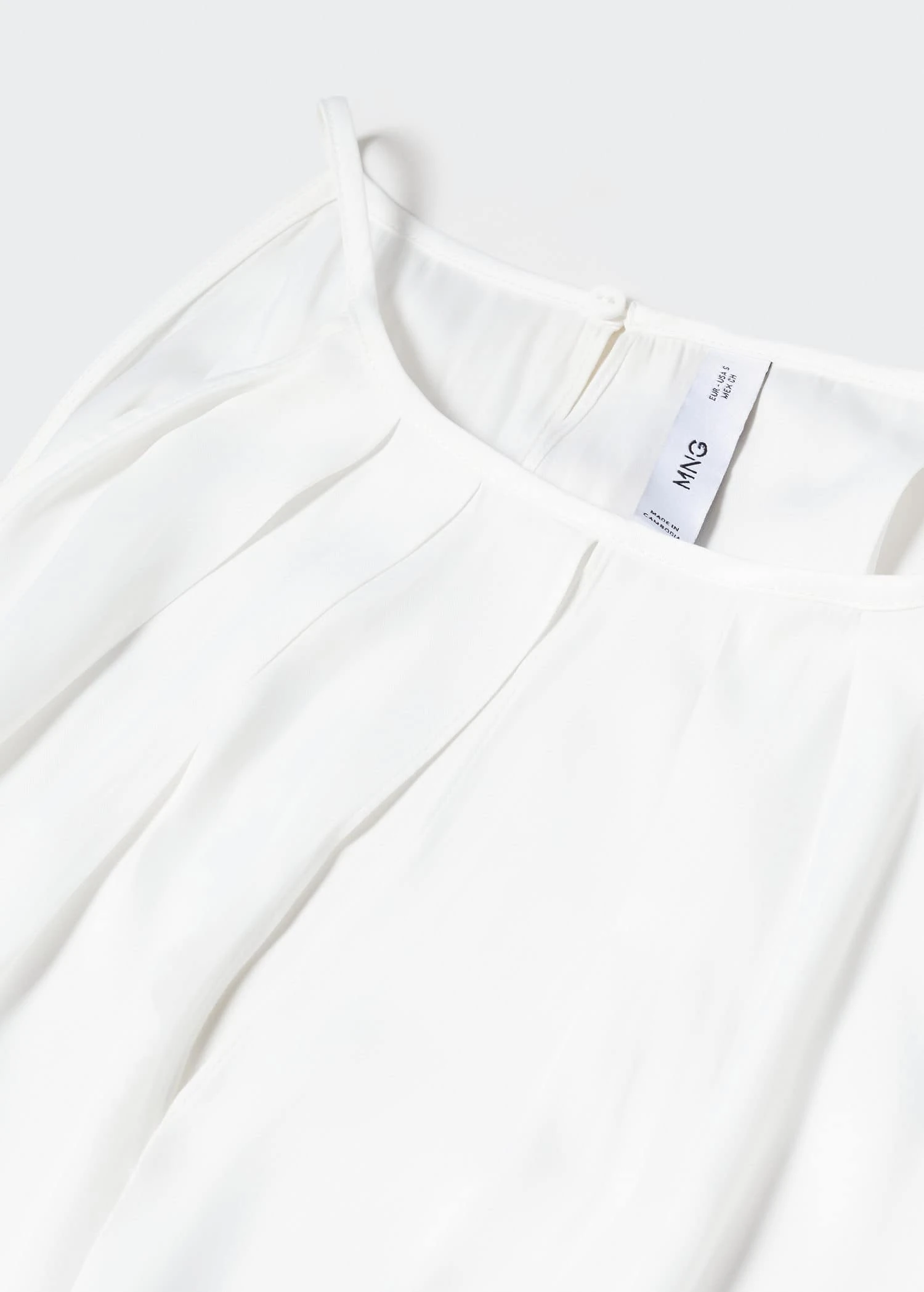 tissu satine, tissu fluide, coupe droite, emmanchures americaines, bretelles fines, ouverture dans le dos avec bouton, collection fetes et ceremoniesComposition: 100% polyester