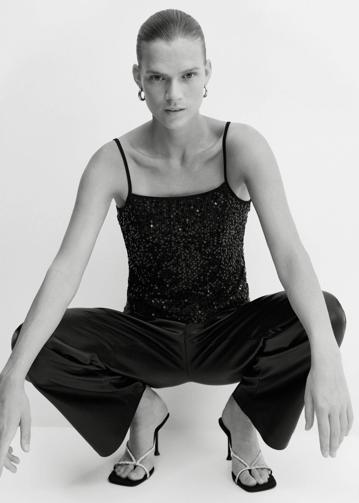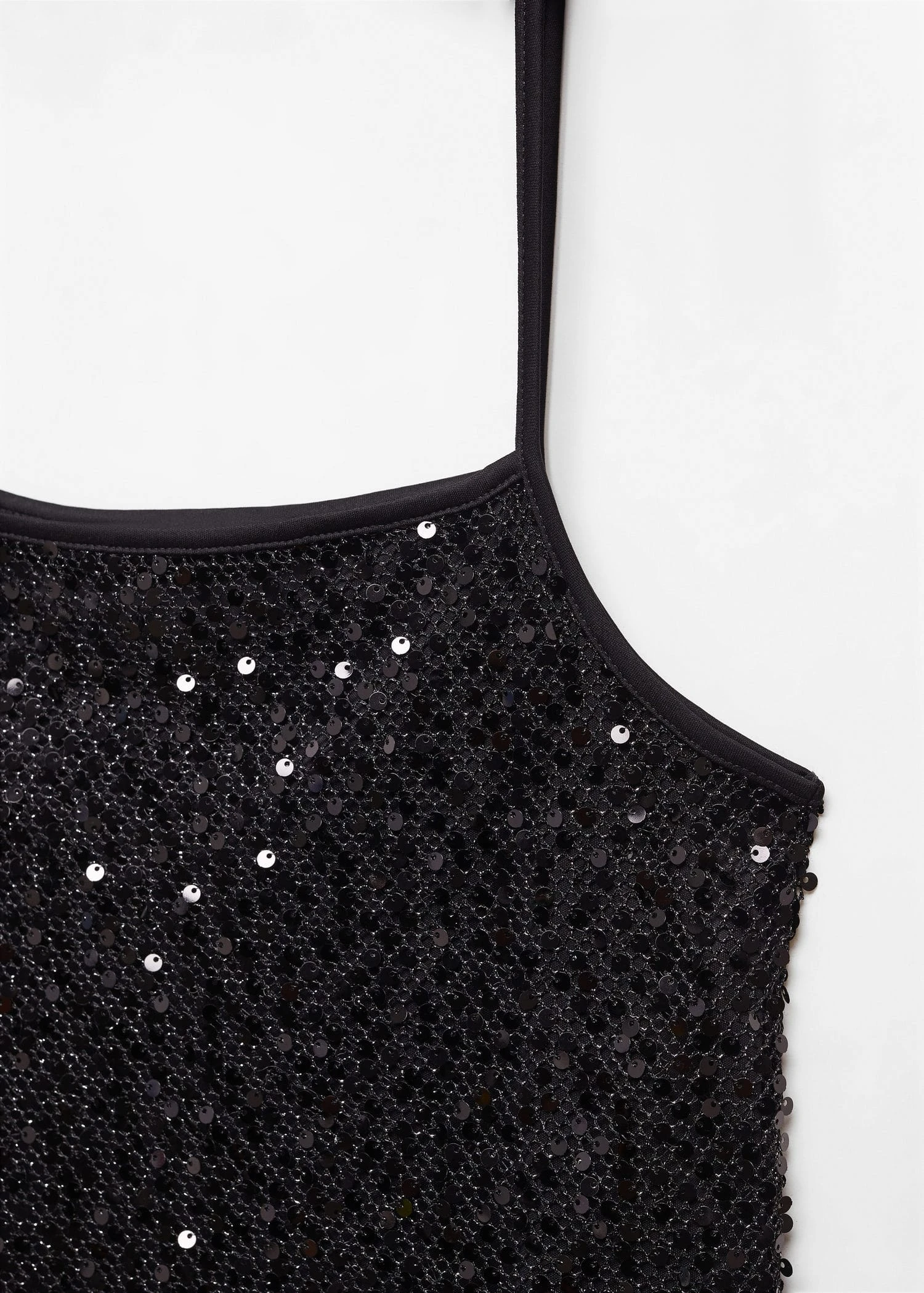 tissu en sequins, coupe courte, droit, sans manches, bretelles fines, doublure, collection fetes et ceremoniesComposition: 96% polyamide,4% polyester. Doublure: 100% polyester. Sequin: 100% poly(téréphtalate d’éthylène)