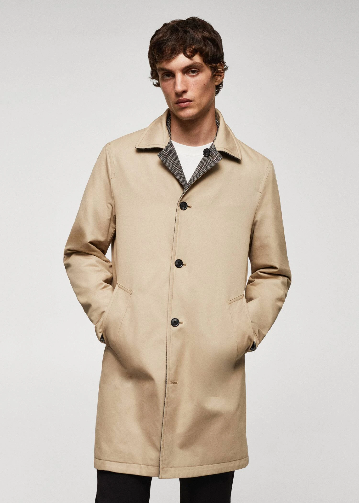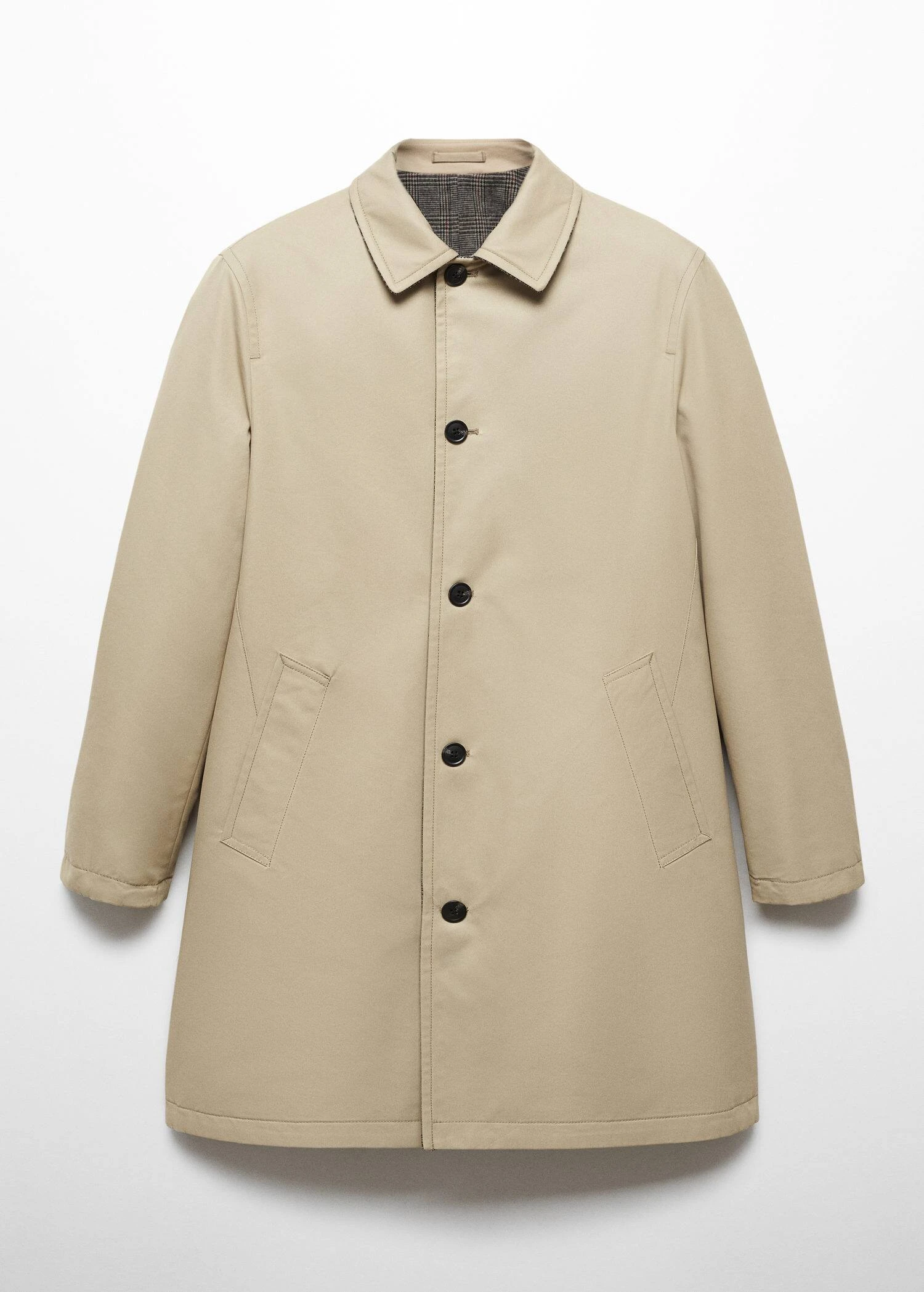 regular-fit, reversible, hydrofuge : tissu technique resistant a l’eau, design impermeable, imprime carreaux ecossais, col classique, fermeture a boutons sur le devant, manches longues, bas fendu a l’arriere, le mannequin mesure 190 cm et porte une taille mComposition: 59% polyester recyclé,41% laine recyclée. Interieur: 64% coton,36% polyester recyclé