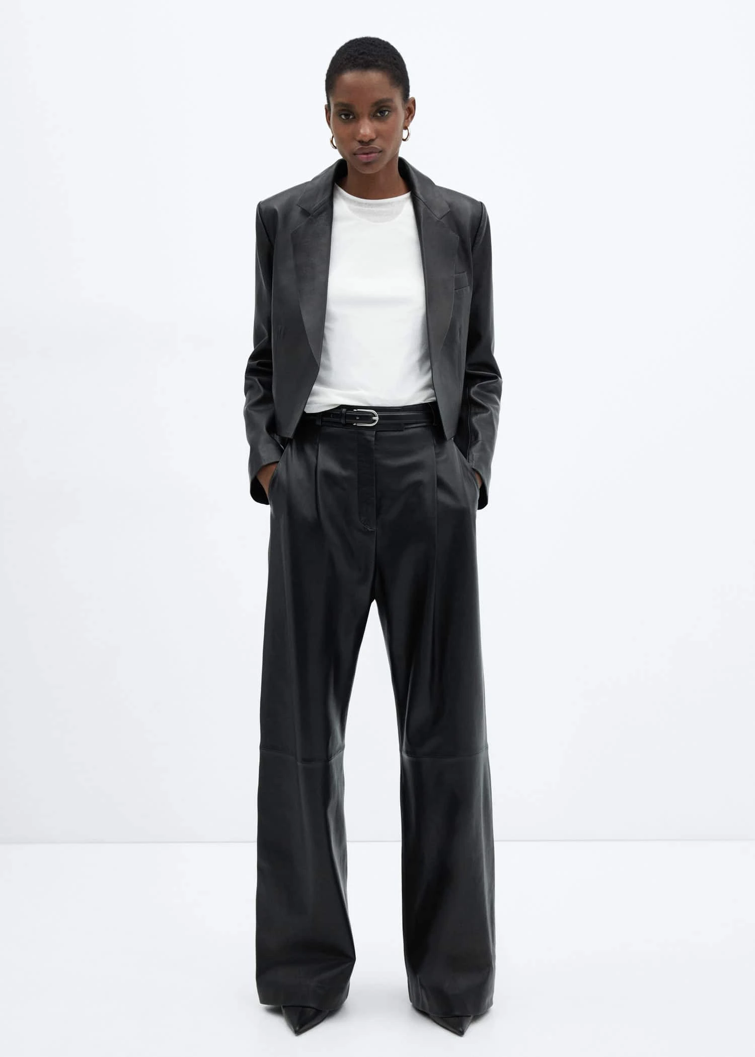 100 % cuir ovin, coupe courte, coupe droite, revers crantes, manches longues, poche passepoilee sur la poitrine, sans fermeture, doublure.Composition: 100% cuir ovin. Doublure: 95% polyester,5% elasthanne