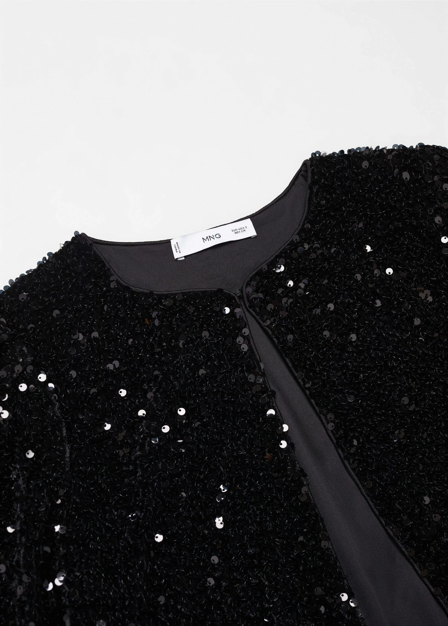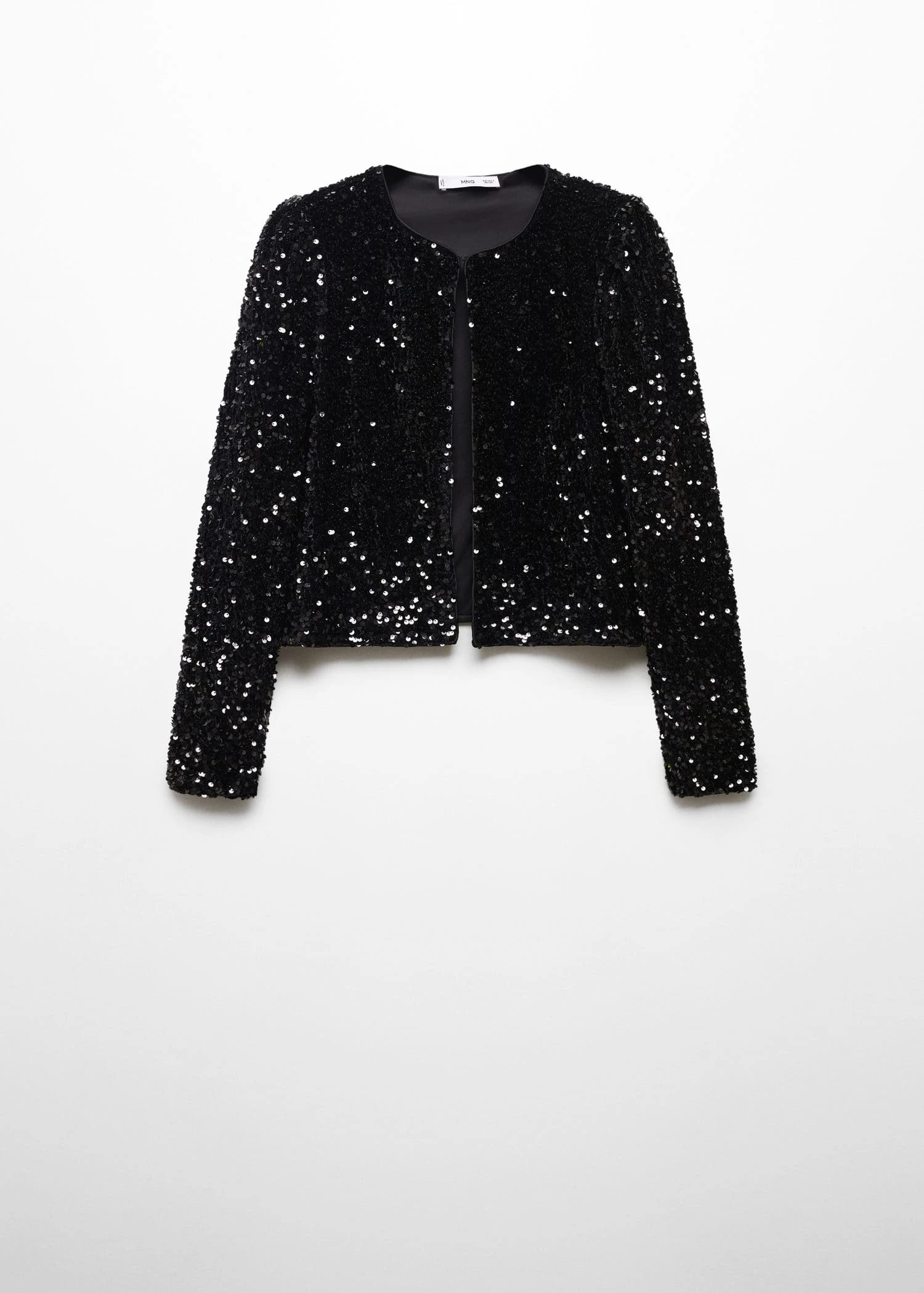 tissu en sequins, coupe droite, col rond, manches longues, fermeture crochet sur le devant, doublure, total look, collection fetes et ceremonies.Composition: 100% polyester. Doublure: 100% polyester. Sequin: 100% poly(téréphtalate d’éthylène)