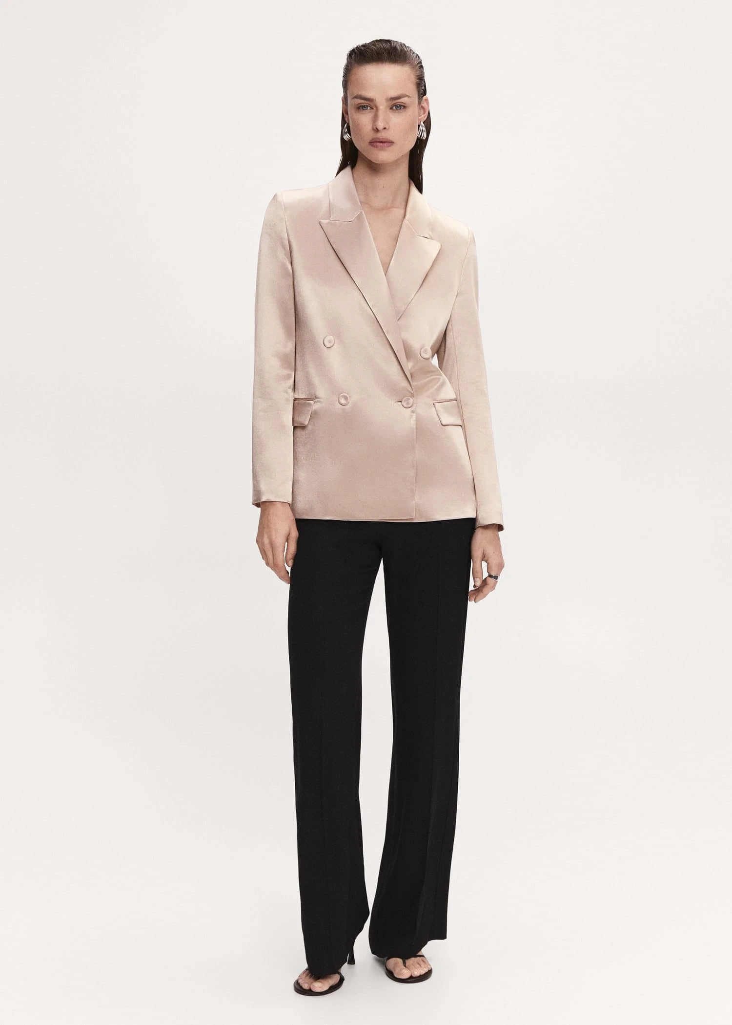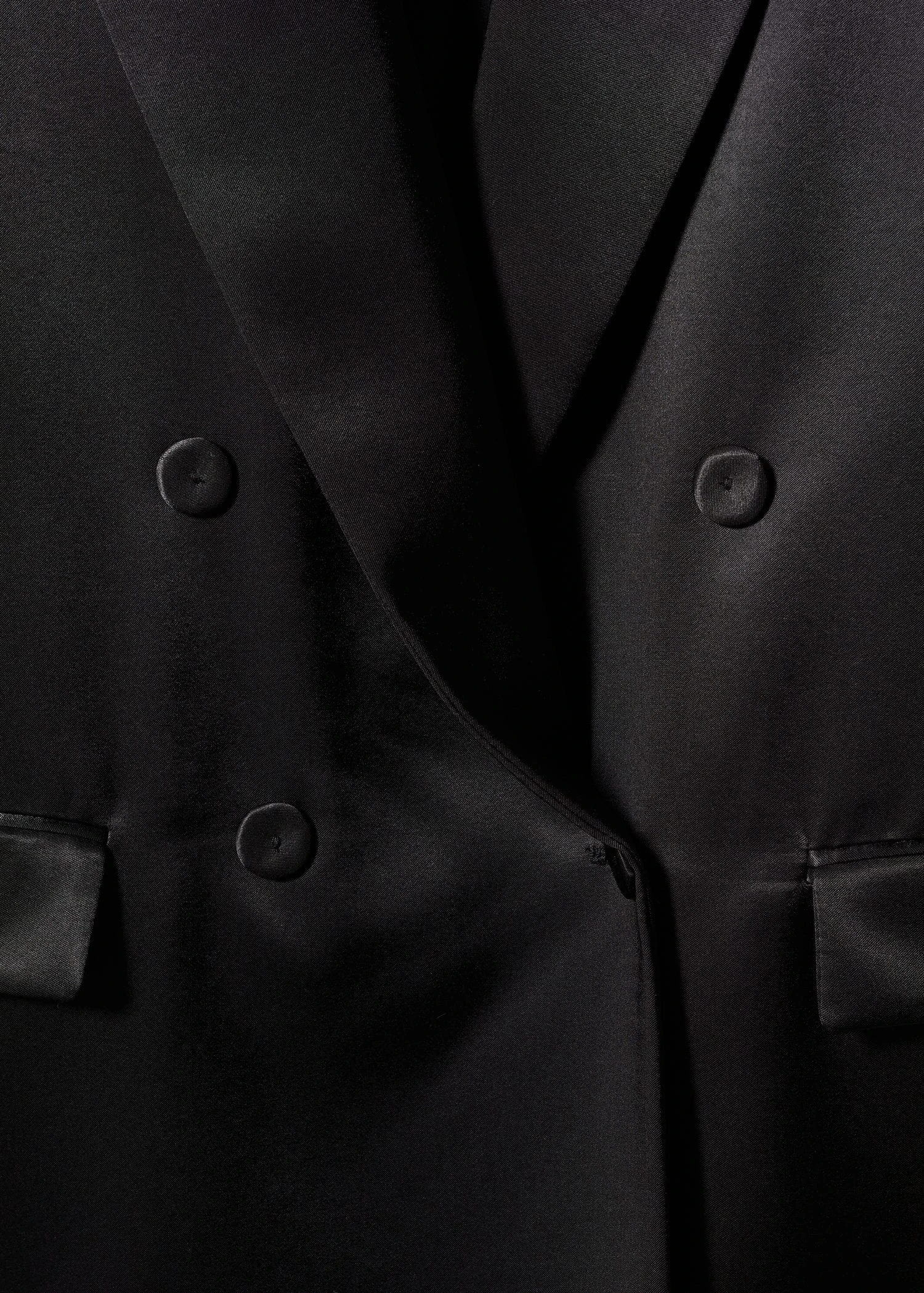 collection selection, tissu fluide, coupe droite, double boutonnage, effet satine, col en v avec rabat, manches longues, fermeture boutonnee sur le devant, poches laterales a rabat, doublure, total look, collection fetes et ceremonies, une capsule de pieces raffinees, fabriquees a partir de materiaux de qualite pour creer une garde-robe feminine et contemporaine pour les grandes occasionsCOMPOSITION:54% VISCOSE,46% POLYESTER. DOUBLURE:100% POLYESTER
