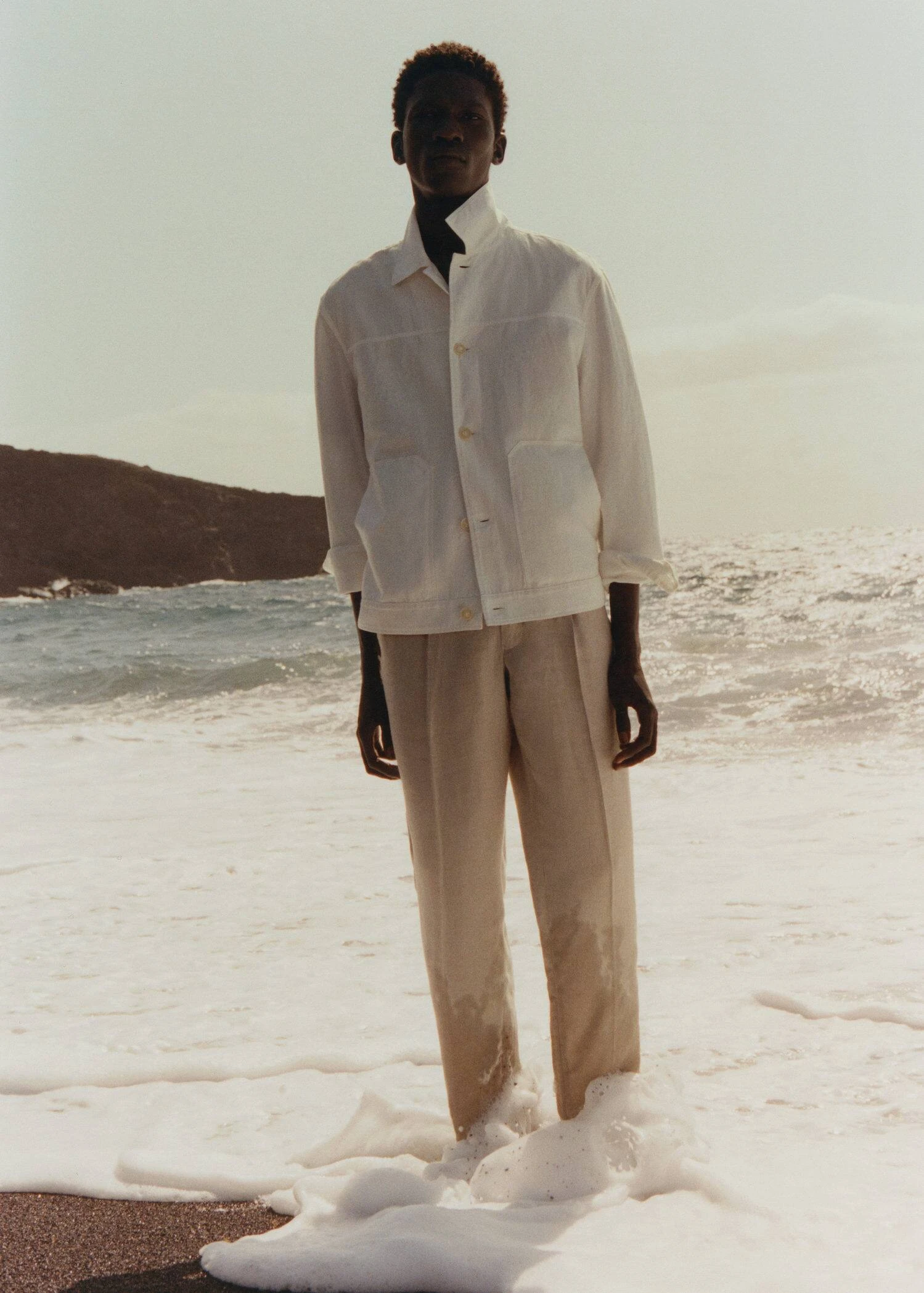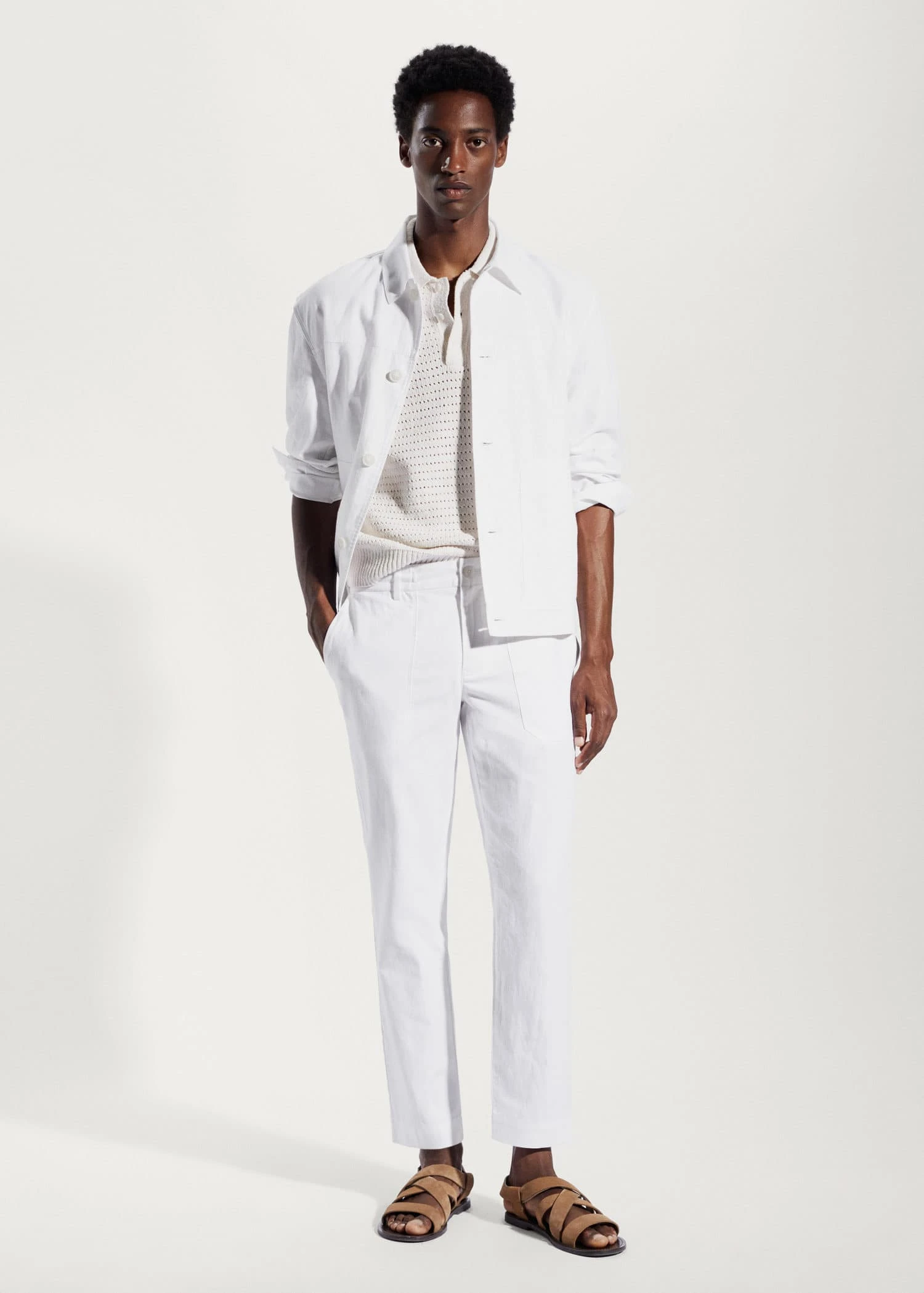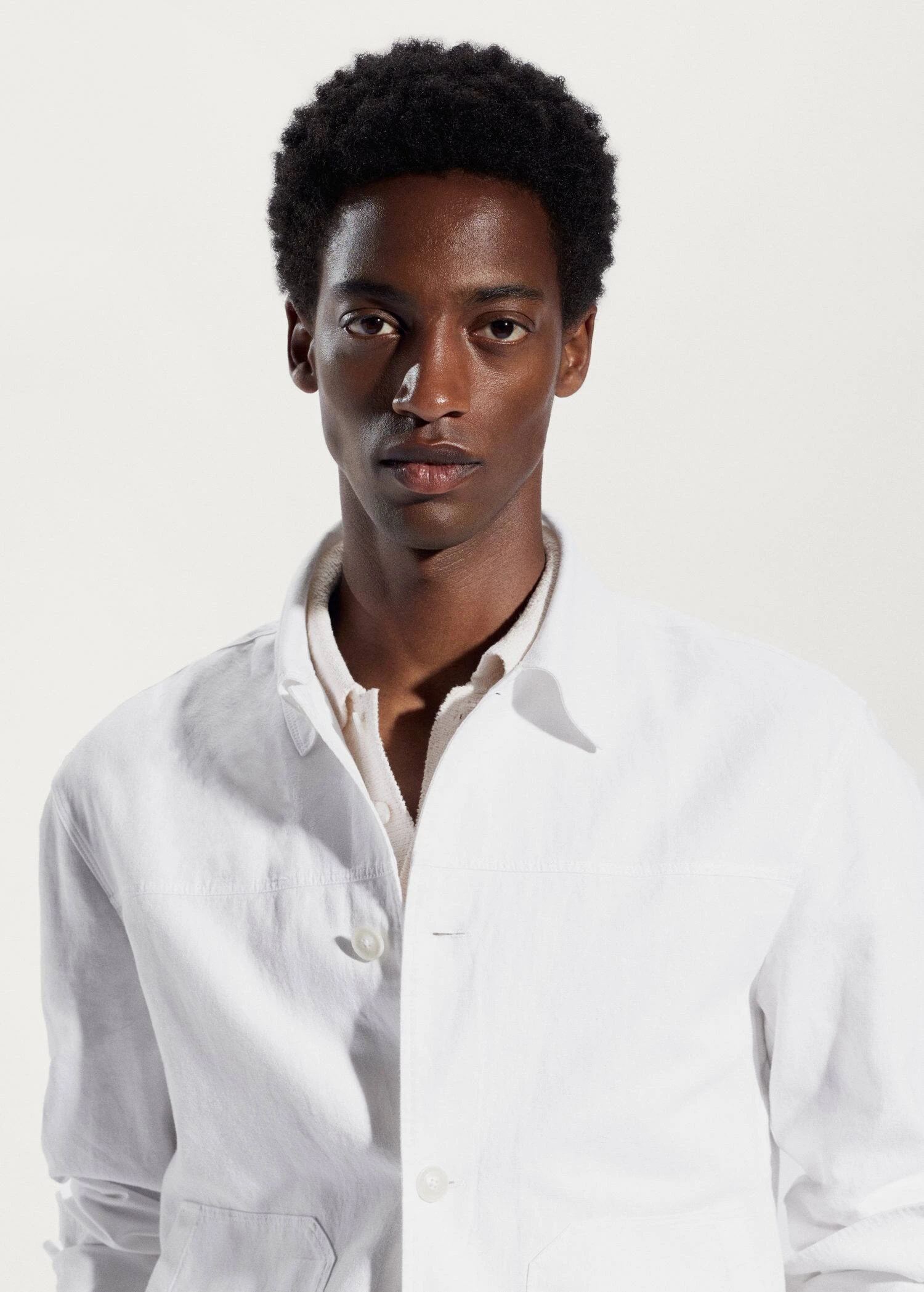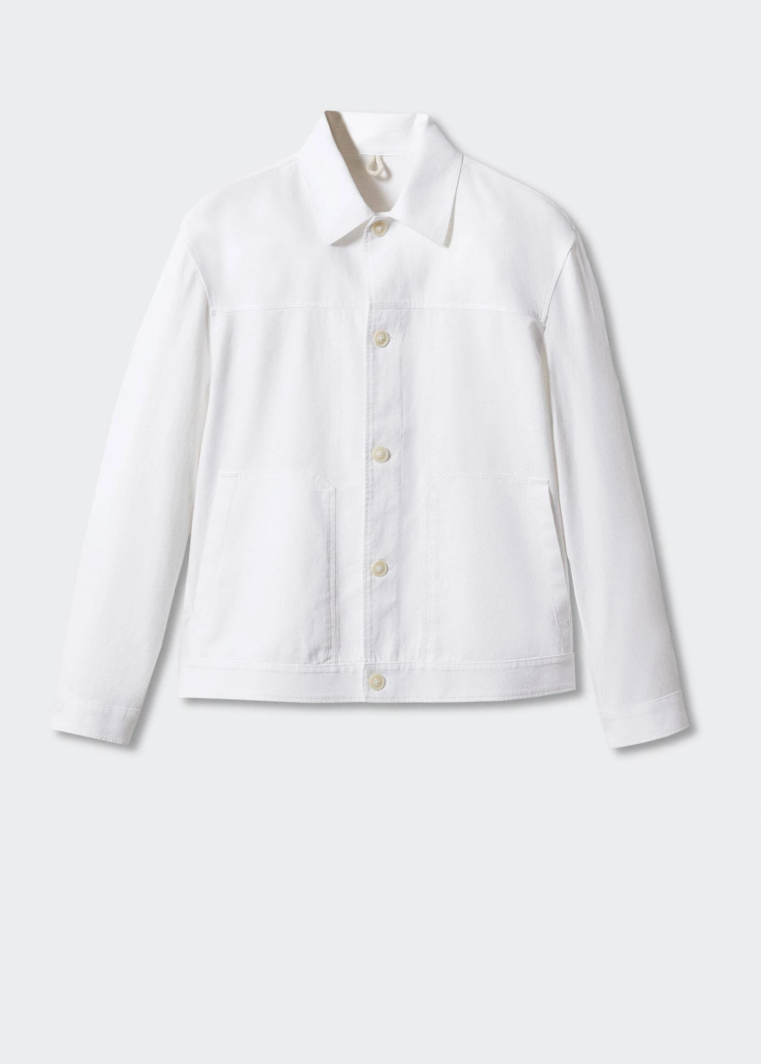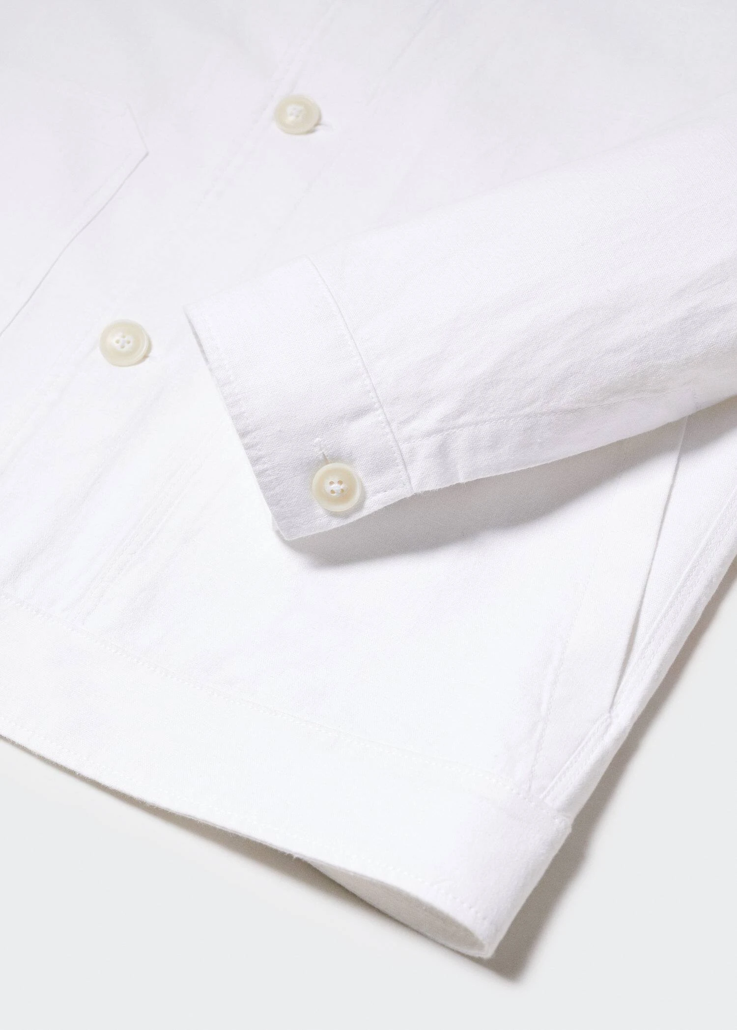 tissu de coton et lin melange, tissu leger, regular-fit, coupe droite, details surpiques, col chemise, fermeture a boutons sur le devant, manches longues boutonnees, poche plaquee sur le devant, bas droit, le mannequin mesure 190 cm et porte une taille m, ensemble avec pantalon disponibleComposition: 57% coton,43% lin