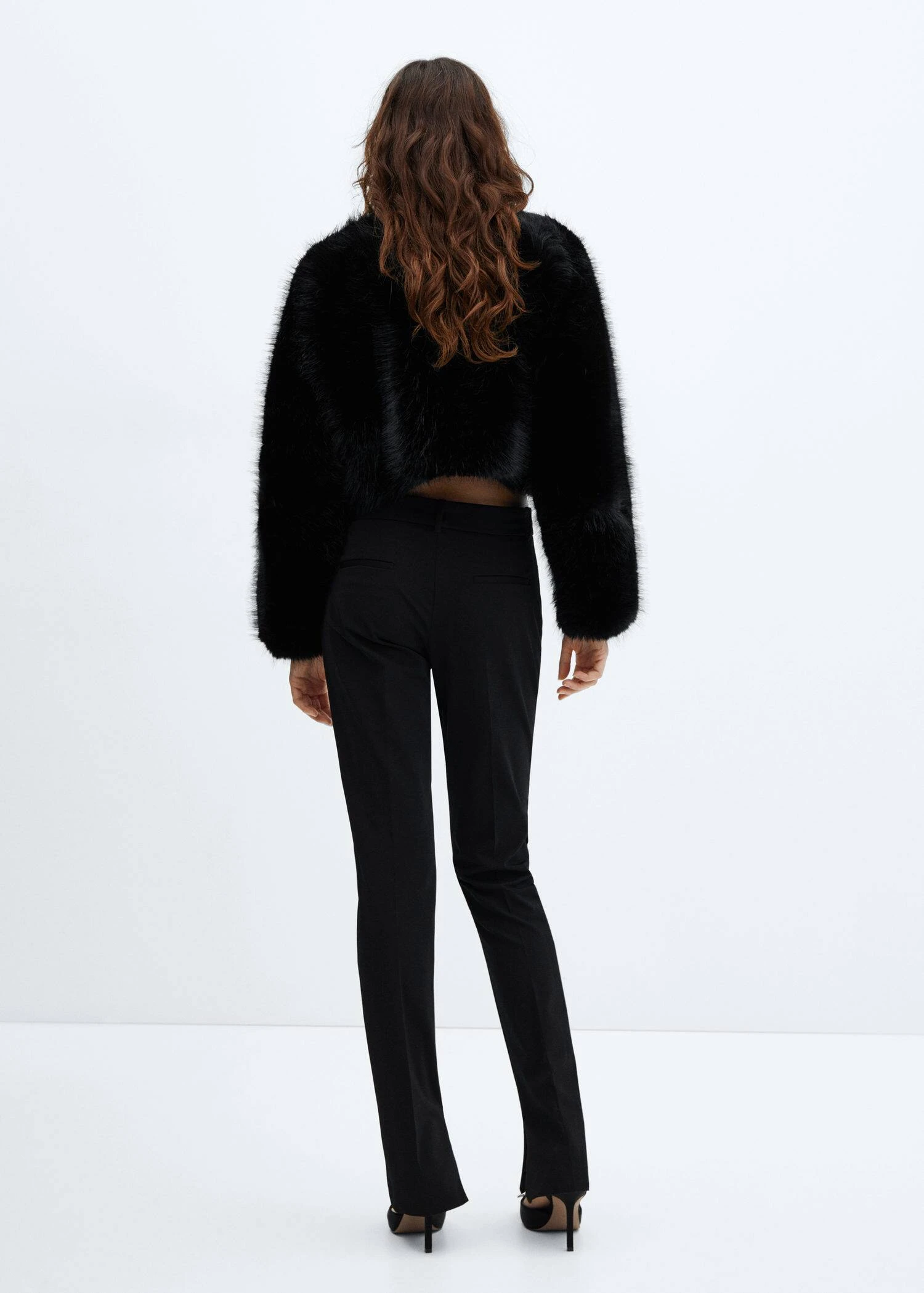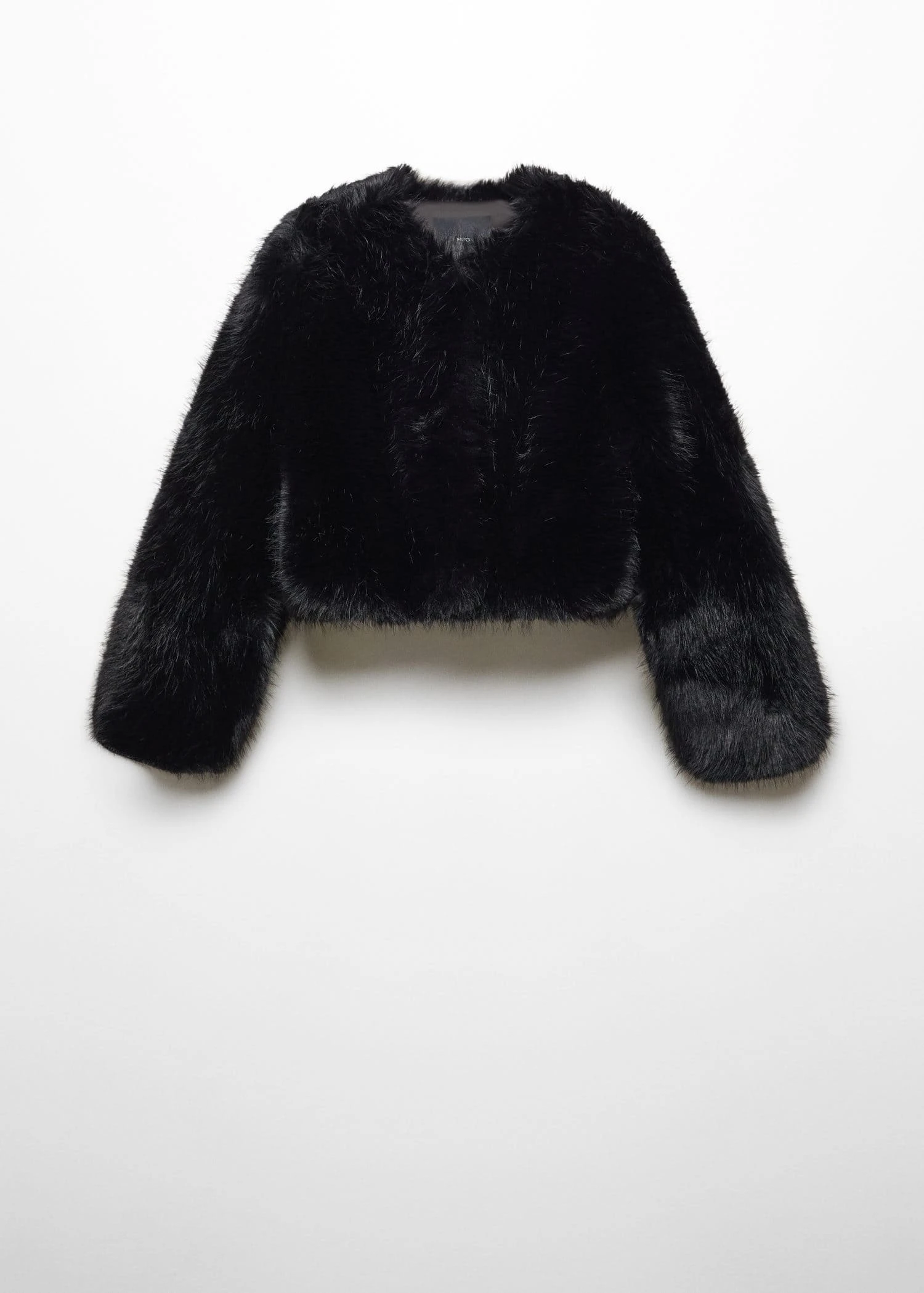 effet fourrure, coupe courte, coupe droite, manches longues, fermeture crochet sur le devant, doublure, collection fetes et ceremonies.Composition: 100% polyester. Doublure: 55% polyester,45% viscose