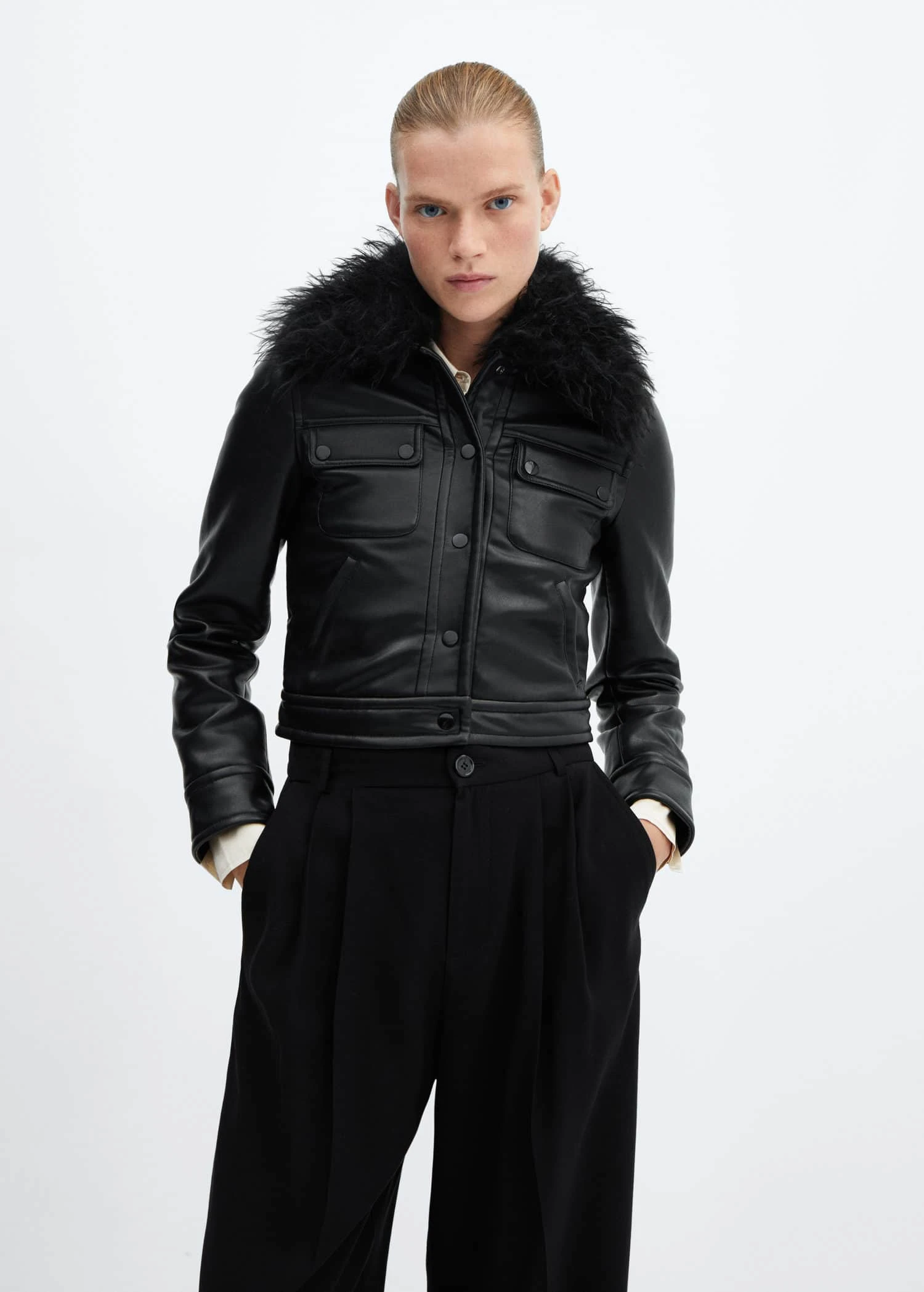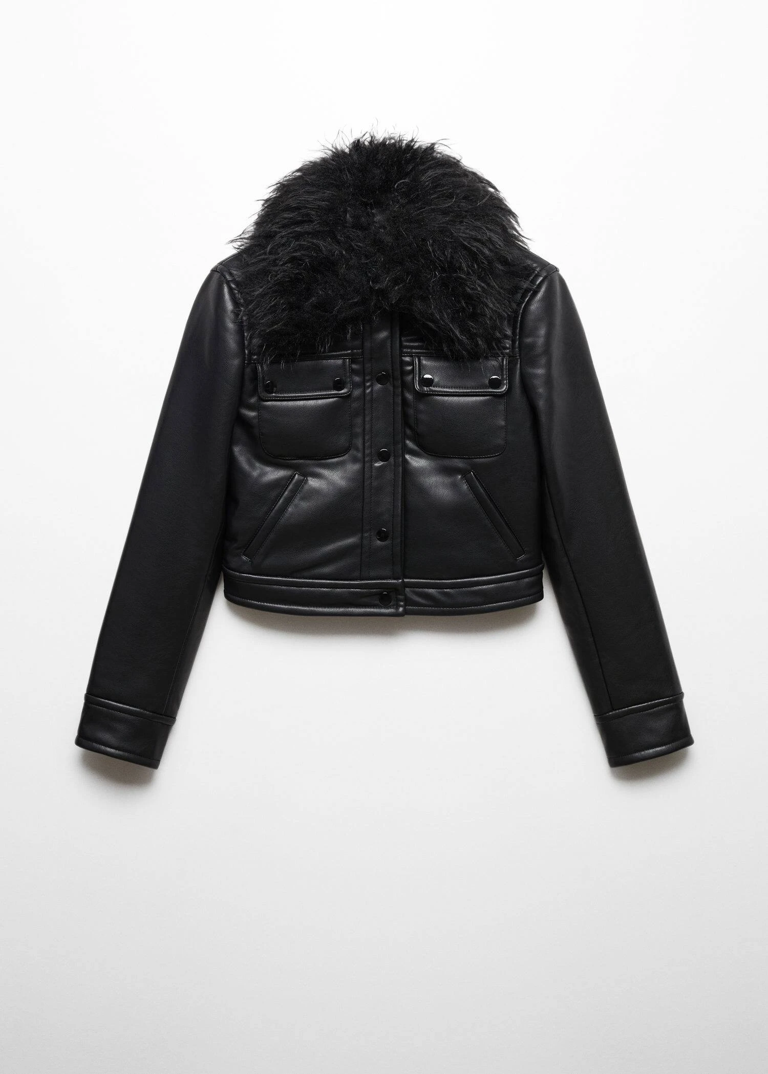 similicuir, matelasse, coupe courte, col chemise, col en fourrure synthetique demontable, manches longues, deux poches laterales, deux poches a rabat avec bouton sur la poitrine, fermeture a boutons sur le devant, doublureComposition: 100% polyester. Doublure: 100% polyester. Col: 100% polyester. Rembourrage: 100% polyester. Revêtement: 100% polyurethane
