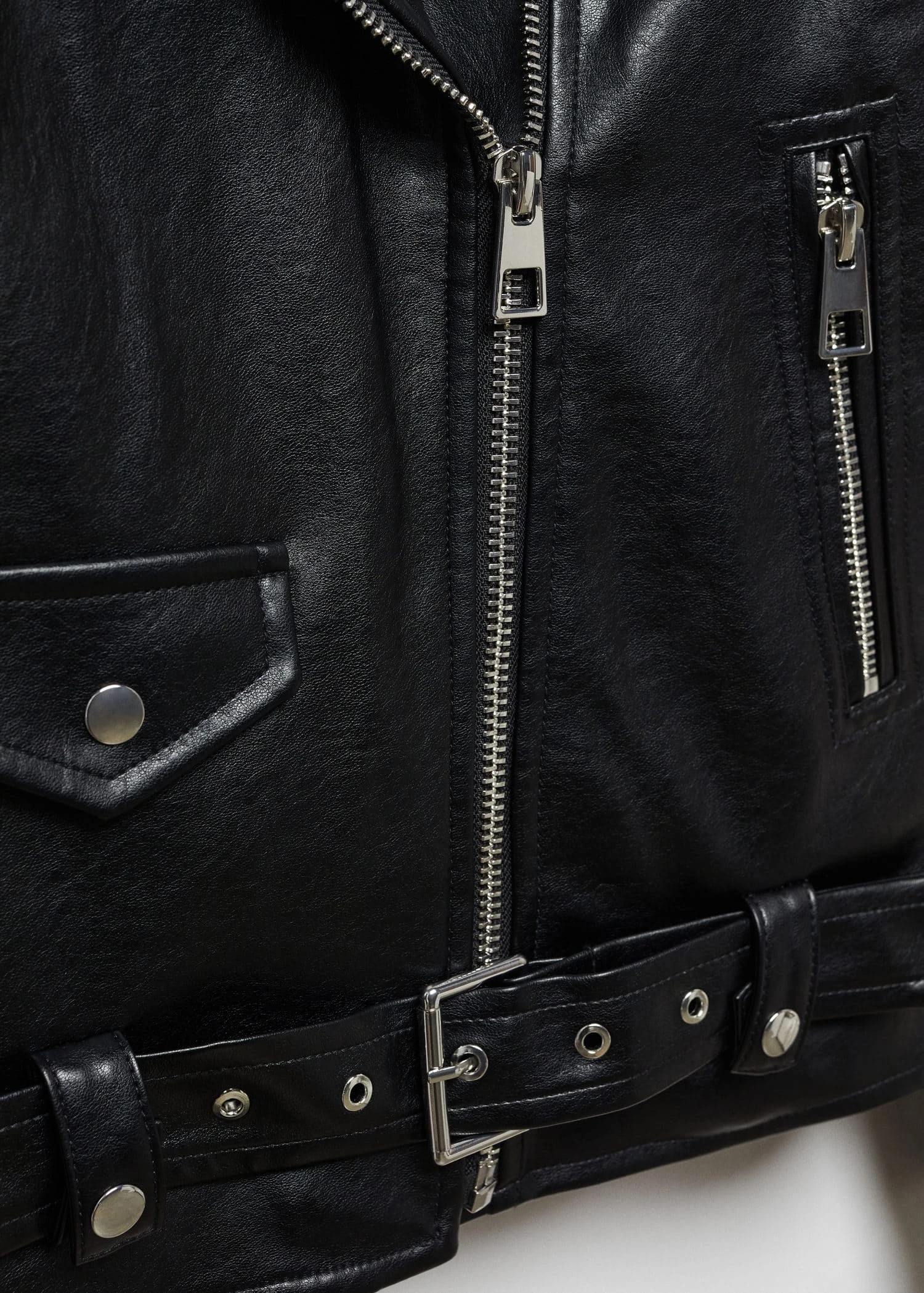 similicuir, style biker, coupe droite, coupe courte, style oversize, col a revers, manches longues, zip, fermeture eclair sur le devant, ceinture decorative, poches zippees sur le devant, boutons decoratifs sur les epaules, doublure, style bohoComposition: 100% polyester. Doublure: 100% polyester. Revêtement: 100% polyurethane. Recouvrement de la ceinture: 100% polyurethane. Base de la ceinture: 100% polyester