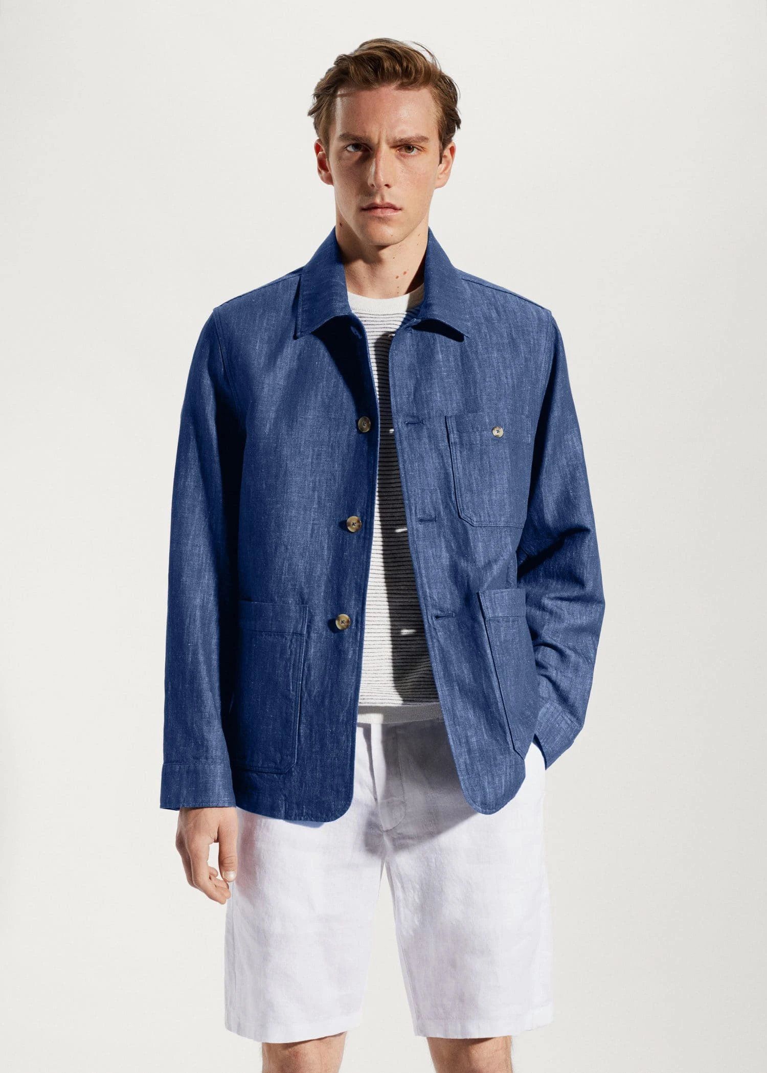 tissu de coton et lin melange, regular-fit, tissu leger, col chemise, fermeture a boutons sur le devant, manches longues avec poignets boutonnes, poche plaquee a bouton sur la poitrine, deux poches plaquees sur les cotes, poche interieure, sans doublure interieure, le mannequin mesure 190 cm et porte une taille m, bas droitComposition: 62% coton,38% lin. Doublure poches: 100% coton