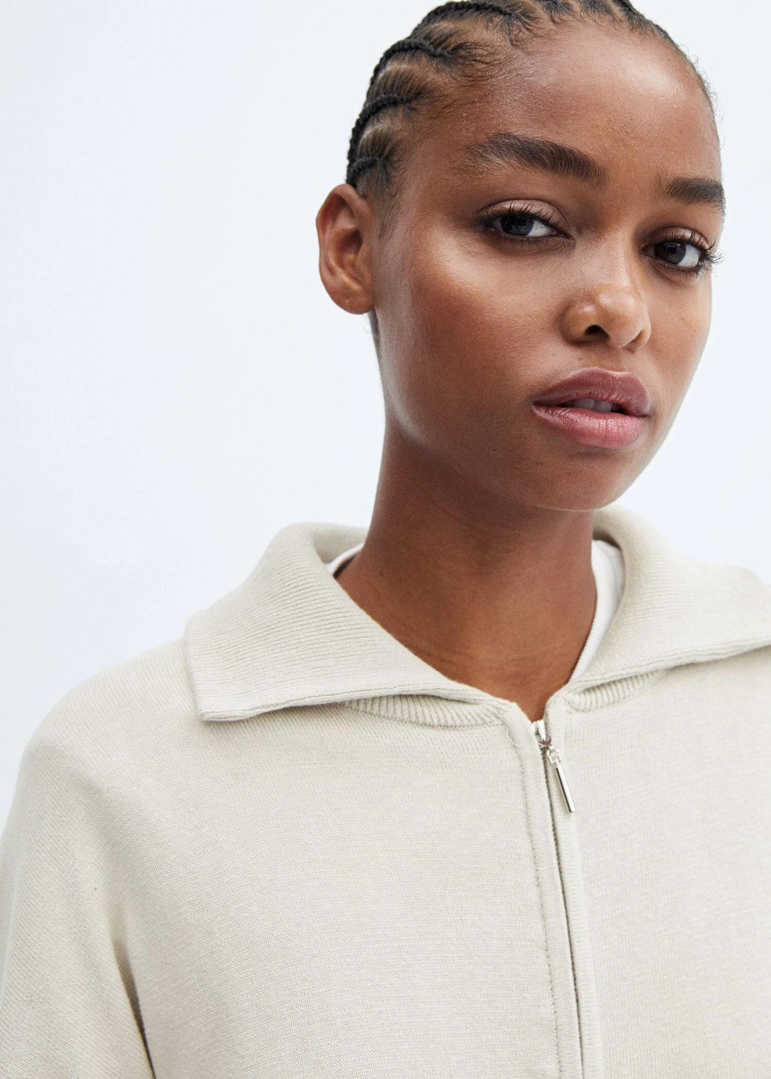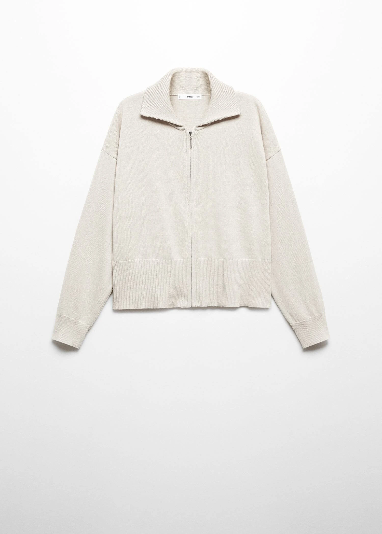 tissu de coton et lin melange, maille moyenne, droit, col chemise, manches longues, couture tombante sur l’epaule, fermeture eclair sur le devant, bords coteles, total lookComposition: 70% coton,30% lin